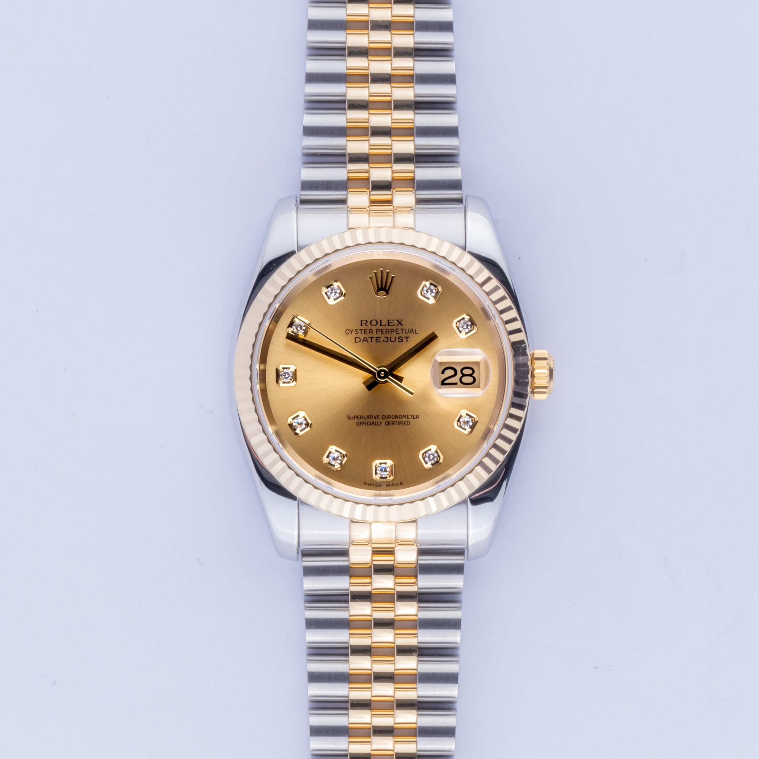 Rolex Oyster Perpetual Datejust Champagne Diamond 116233 2005 (Vollständiger Satz)