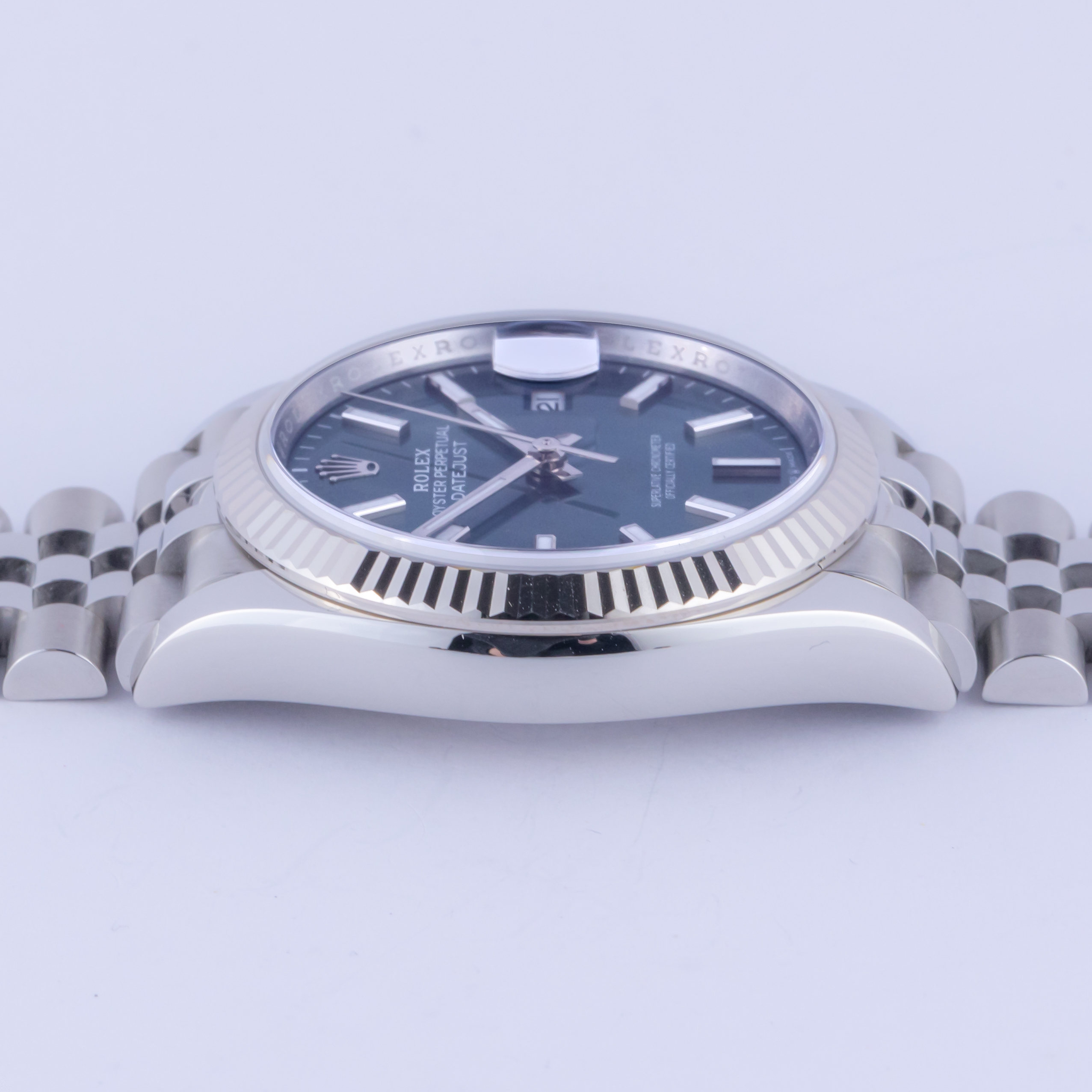 Rolex Oyster Perpetual Datejust Referenz 126234 aus dem Jahr 2024 mit komplettem Set. Die Datejust 126234 misst ein 36-mm-Edelstahlgehäuse, ein Edelstahl-Jubiläumsarmband mit Oysterclasp und eine 18k Weißgold geriffelte Lünette. Diese Datejust 126234 verfügt über ein Automatikwerk Kaliber 3235 mit Quickset Datum Funktion, Kratzfestigkeit Saphirglas und ein mintgrünes Zifferblatt mit Chromalight Zeiger und Markierungen.