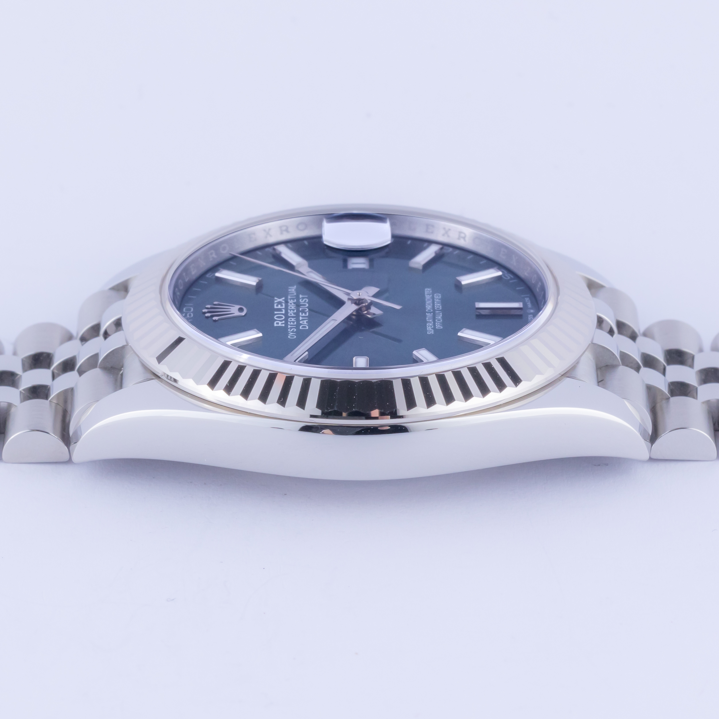 Rolex Oyster Perpetual Datejust Referenz 126334 aus dem Jahr 2024 inklusive komplettem Set. Die Datejust 126334 misst ein 41-mm-Edelstahlgehäuse, ein Edelstahl (904L) Jubilee-Armband mit Oysterclasp und eine kannelierte 18K Weißgold-Lünette. Diese Datejust 126334 verfügt über ein Automatikwerk Kaliber 3235 mit einem Quickset-Datum-Funktion, eine Kratzfestigkeit Saphirglas und mintgrünes Zifferblatt.