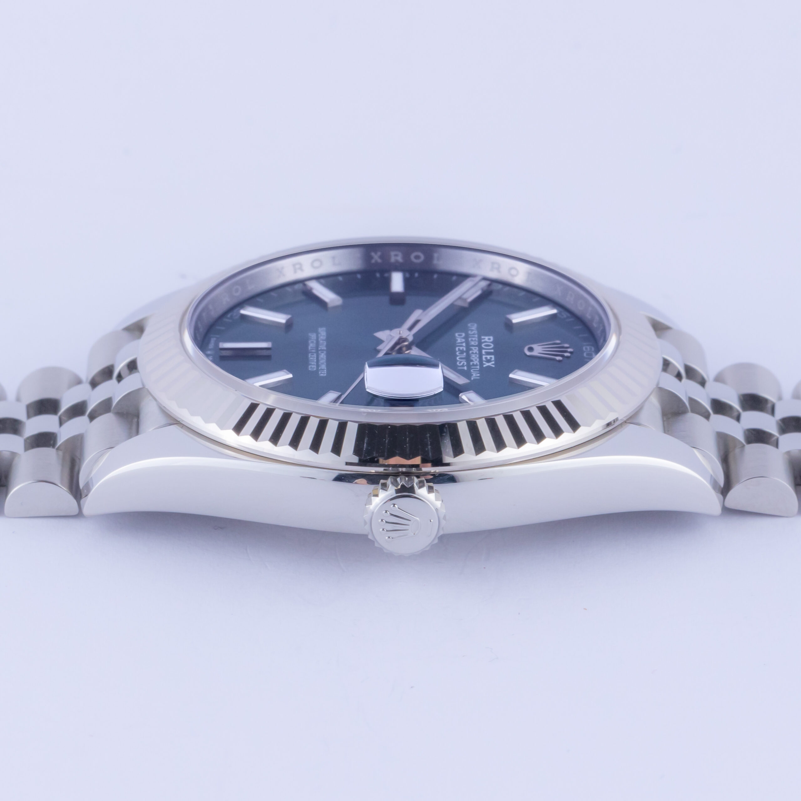 Rolex Oyster Perpetual Datejust Referenz 126334 aus dem Jahr 2024 inklusive komplettem Set. Die Datejust 126334 misst ein 41-mm-Edelstahlgehäuse, ein Edelstahl (904L) Jubilee-Armband mit Oysterclasp und eine kannelierte 18K Weißgold-Lünette. Diese Datejust 126334 verfügt über ein Automatikwerk Kaliber 3235 mit einem Quickset-Datum-Funktion, eine Kratzfestigkeit Saphirglas und mintgrünes Zifferblatt.