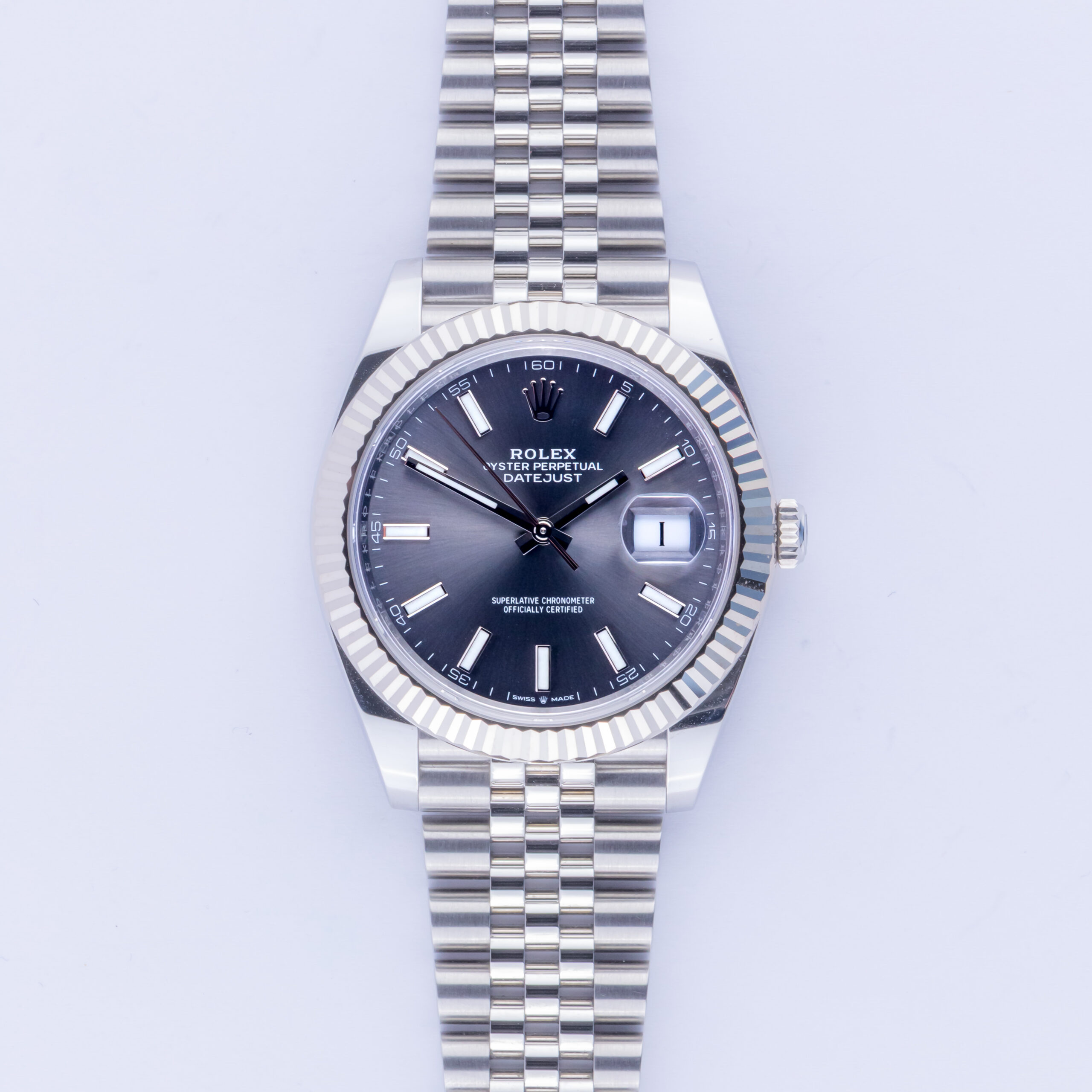 Rolex Oyster Perpetual Datejust Referenz 126334 aus dem Jahr 2025 inklusive komplettem Set. Die Datejust 126334 misst ein 41-mm-Edelstahlgehäuse, ein Edelstahl (904L) Jubilee-Armband mit Oysterclasp und eine kannelierte 18K Weißgold-Lünette. Diese Datejust 126334 verfügt über ein Automatikwerk Kaliber 3235 mit einem Quickset-Datum-Funktion, eine Kratzfestigkeit Saphirglas und Rhodium-Zifferblatt.