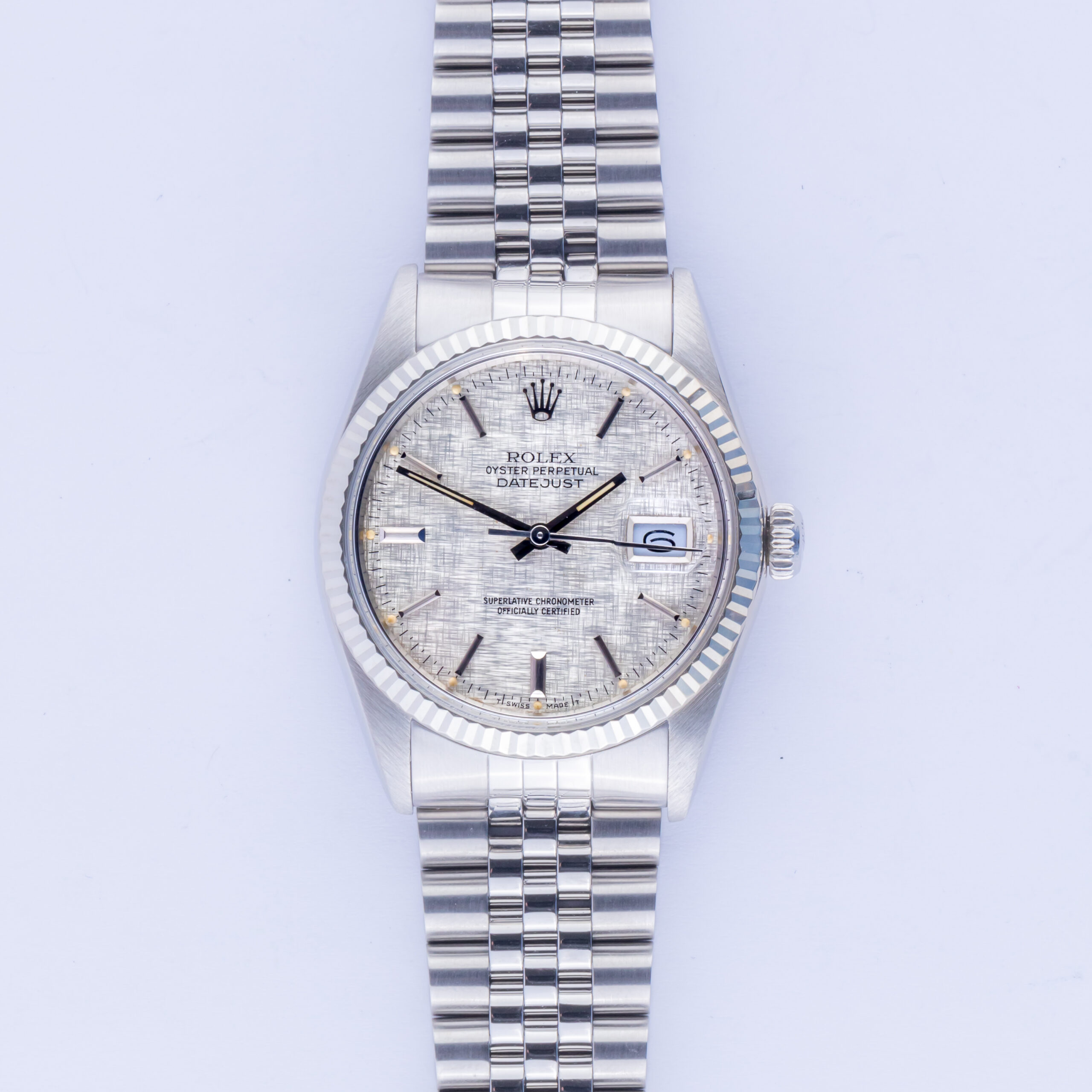 Überzeugen Sie sich selbst von dieser unverzichtbaren Uhr für jeden Tag und entdecken Sie den Unterschied, den eine alte Rolex ausmacht. Da die Datejust 16014 in einer Vielzahl von Zifferblättern erhältlich ist, können Sie ganz einfach die perfekte Uhr für Ihren Geschmack finden. Dank des meisterhaft konstruierten Uhrwerks von Rolex zeigt diese zeitlose Uhr am Handgelenk die genaueste Zeit an, die Sie je erlebt haben.