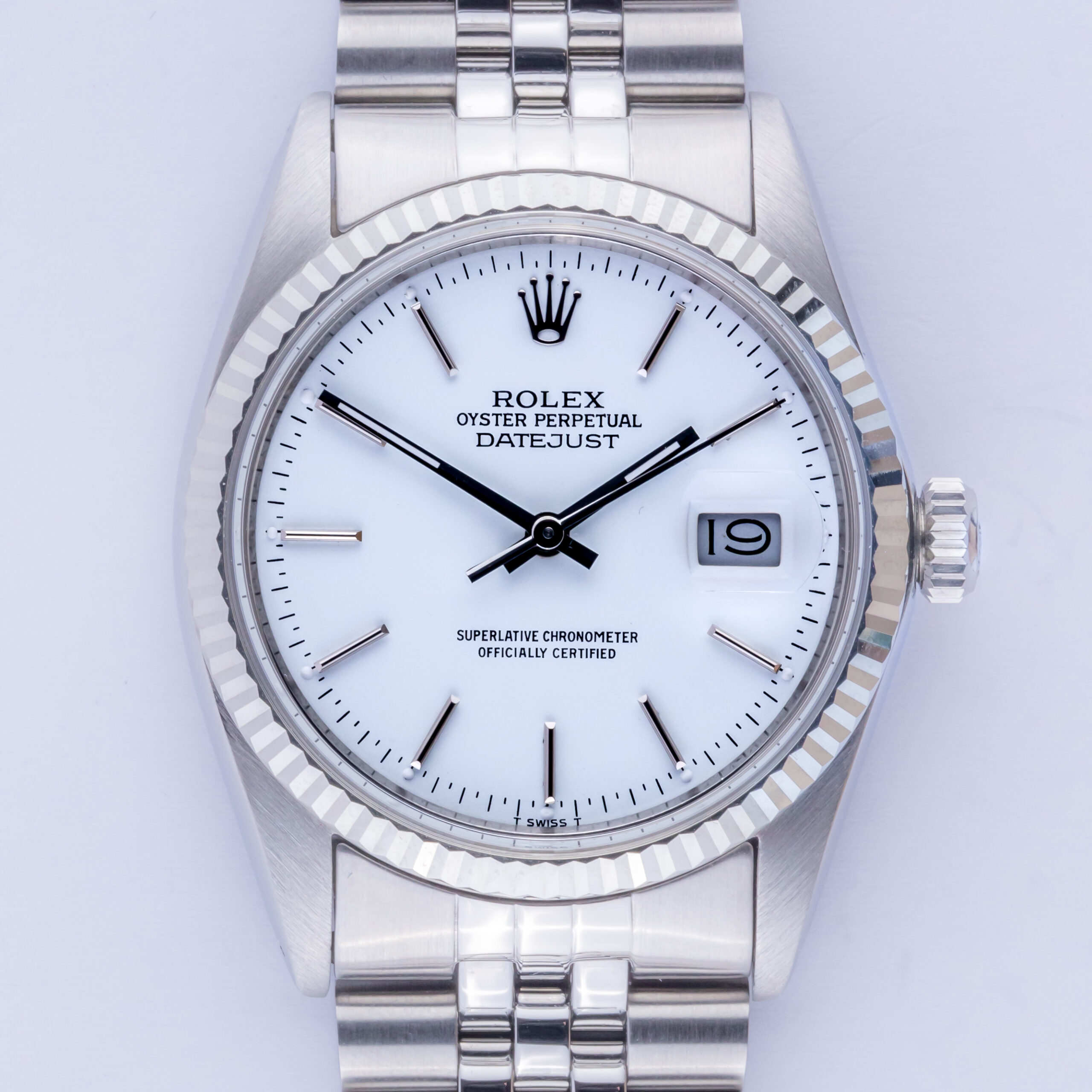 Überzeugen Sie sich selbst von dieser unverzichtbaren Uhr für jeden Tag und entdecken Sie den Unterschied, den eine alte Rolex ausmacht. Da die Datejust 16014 in einer Vielzahl von Zifferblättern erhältlich ist, können Sie ganz einfach die perfekte Uhr für Ihren Geschmack finden. Dank des meisterhaft konstruierten Uhrwerks von Rolex zeigt diese zeitlose Uhr am Handgelenk die genaueste Zeit an, die Sie je erlebt haben.
