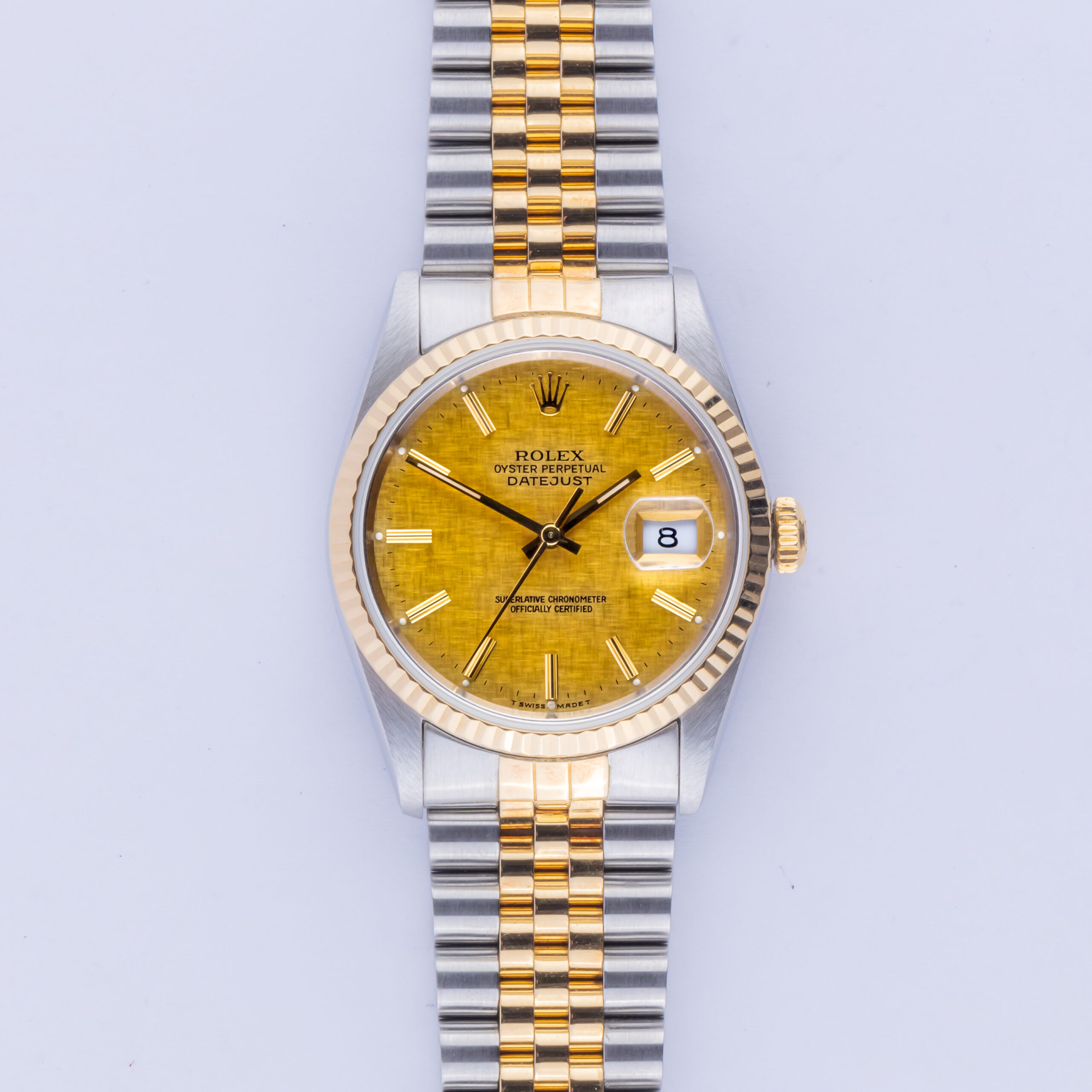 Rolex Oyster Perpetual Datejust Champagne Linen 16233 1991 (Vollständiger Satz)