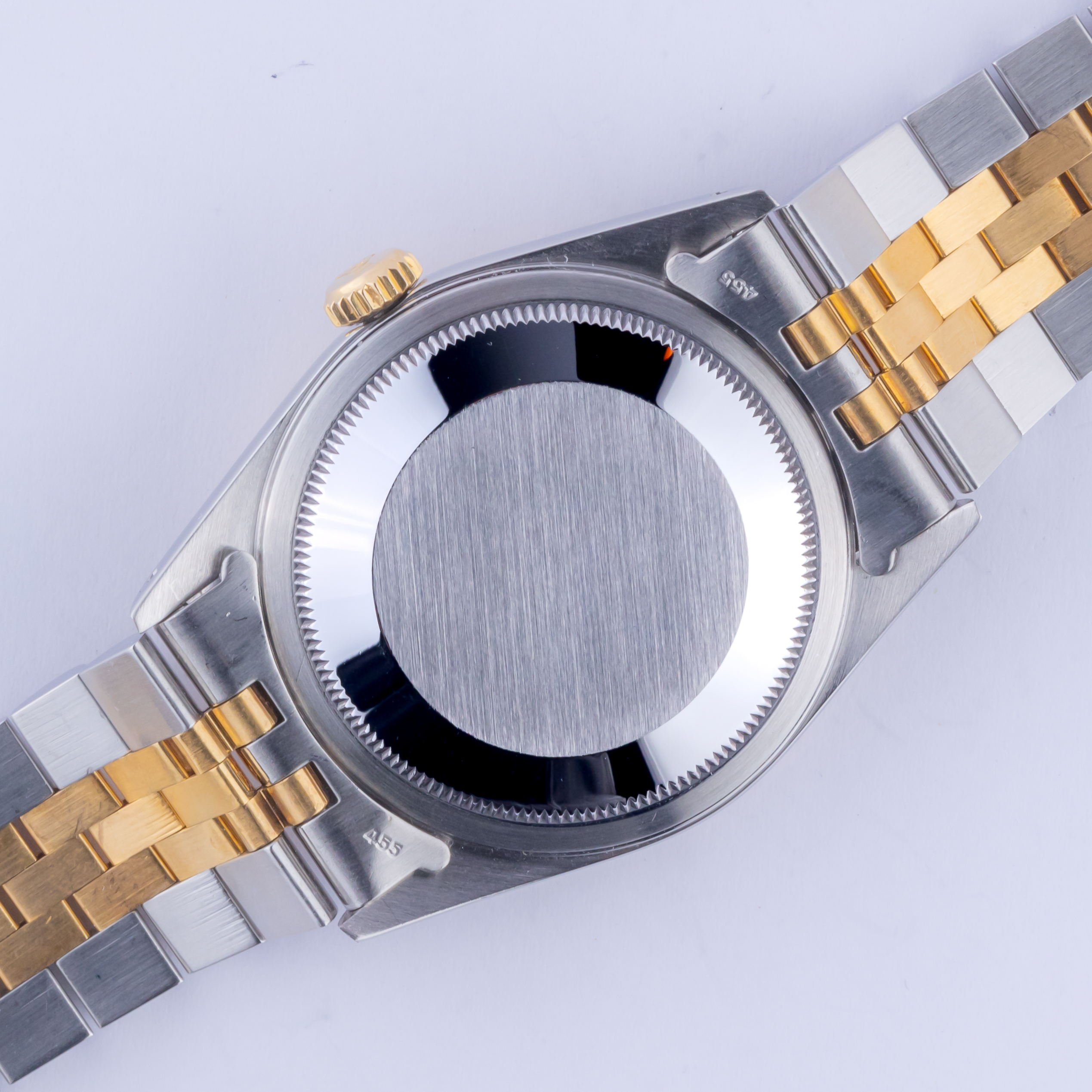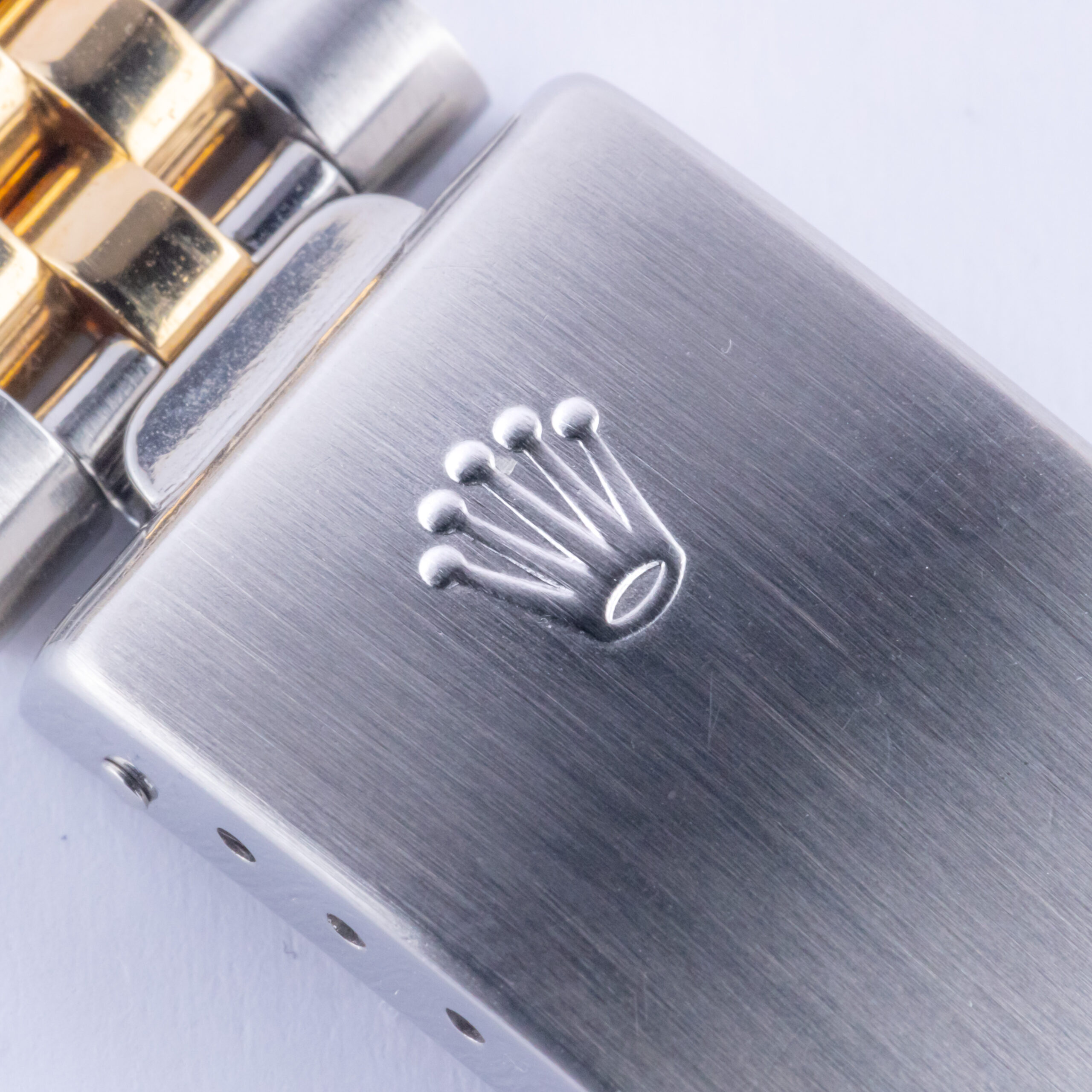 Rolex Oyster Perpetual Datejust Referenz 16233 aus dem Jahr 1991 mit komplettem Set. Die Datejust 16233 misst eine 36mm Gold und Edelstahl Gehäuse, zweifarbige Jubilee Armband und kannelierte 18k Gold Lünette. Diese Datejust 16233 verfügt über ein Automatikwerk Kaliber 3135 mit einem Quickset-Datum-Funktion, eine Kratzfestigkeit Saphirglas und ein linen Zifferblatt mit Tritium Zeiger.