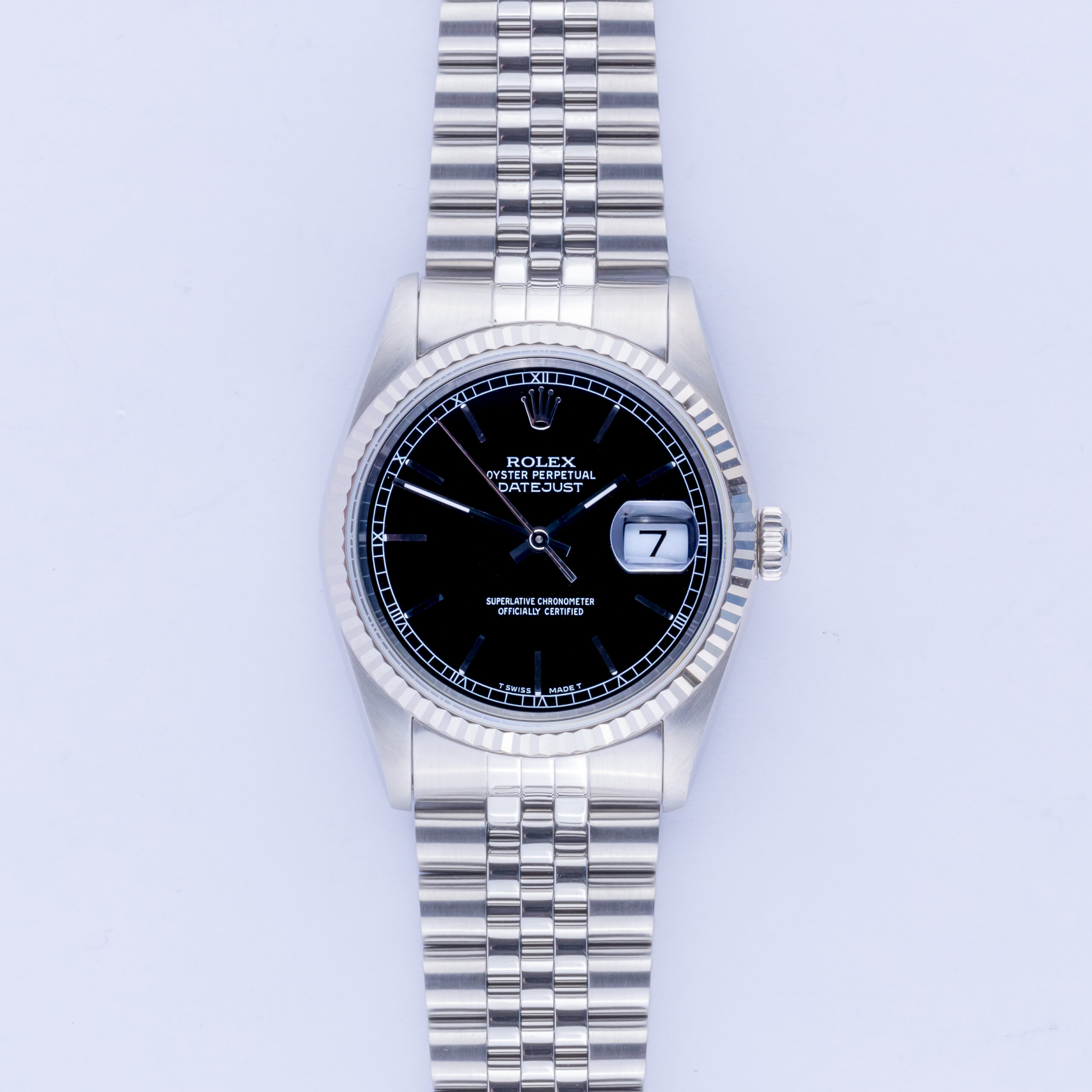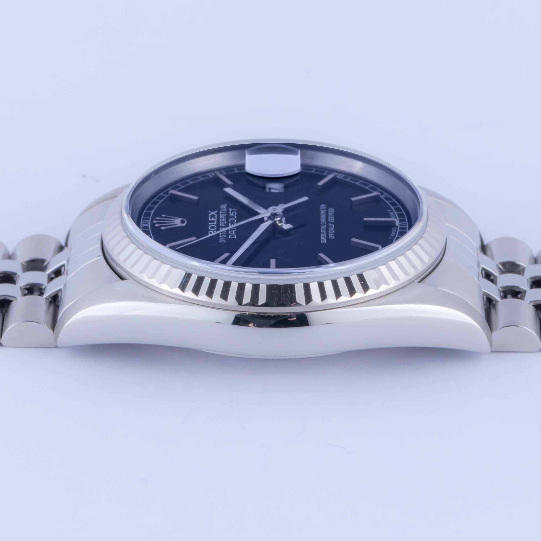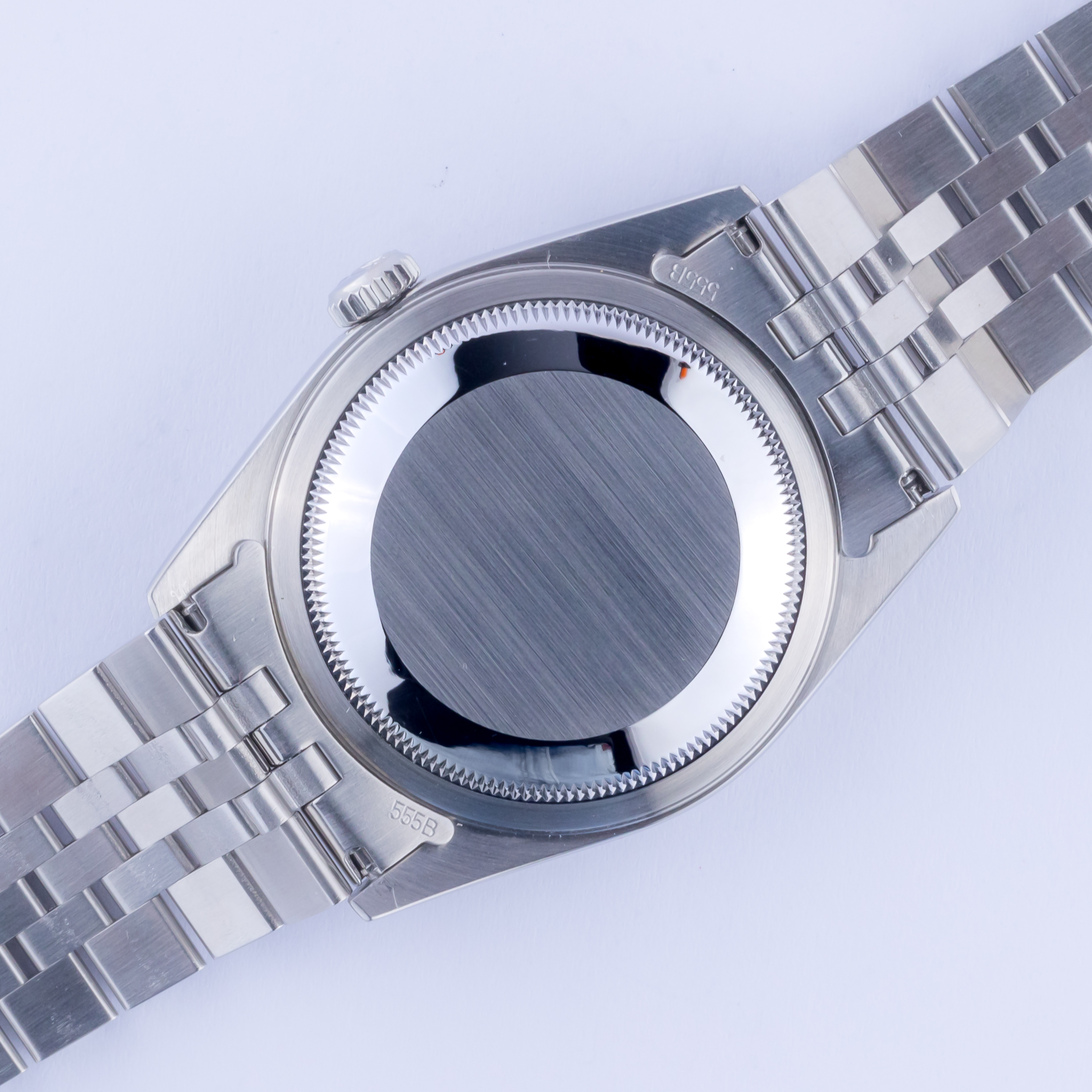 Auch wenn viele die Breite von 36 mm im Vergleich zu aktuellen Herrenuhren als nominell betrachten, sieht die Rolex Datejust 16234 am Handgelenk eher wie eine 40-mm-Uhr aus. Diese Vintage-Rolex ist mit dem zuverlässigen und stets präzisen Automatikwerk Kaliber 3135 Perpetual ausgestattet, für das Rolex berühmt ist. Es ist außerdem COSC-zertifiziert und wird von echten Handwerkern zusammen mit der von Rolex hergestellten Breguet-Spirale gefertigt. Dieser elegante Zeitmesser verfügt über die revolutionäre Quickset-Datumsfunktion, die die Datejust-Modelle bei ihrem Erscheinen auf die Landkarte setzte.