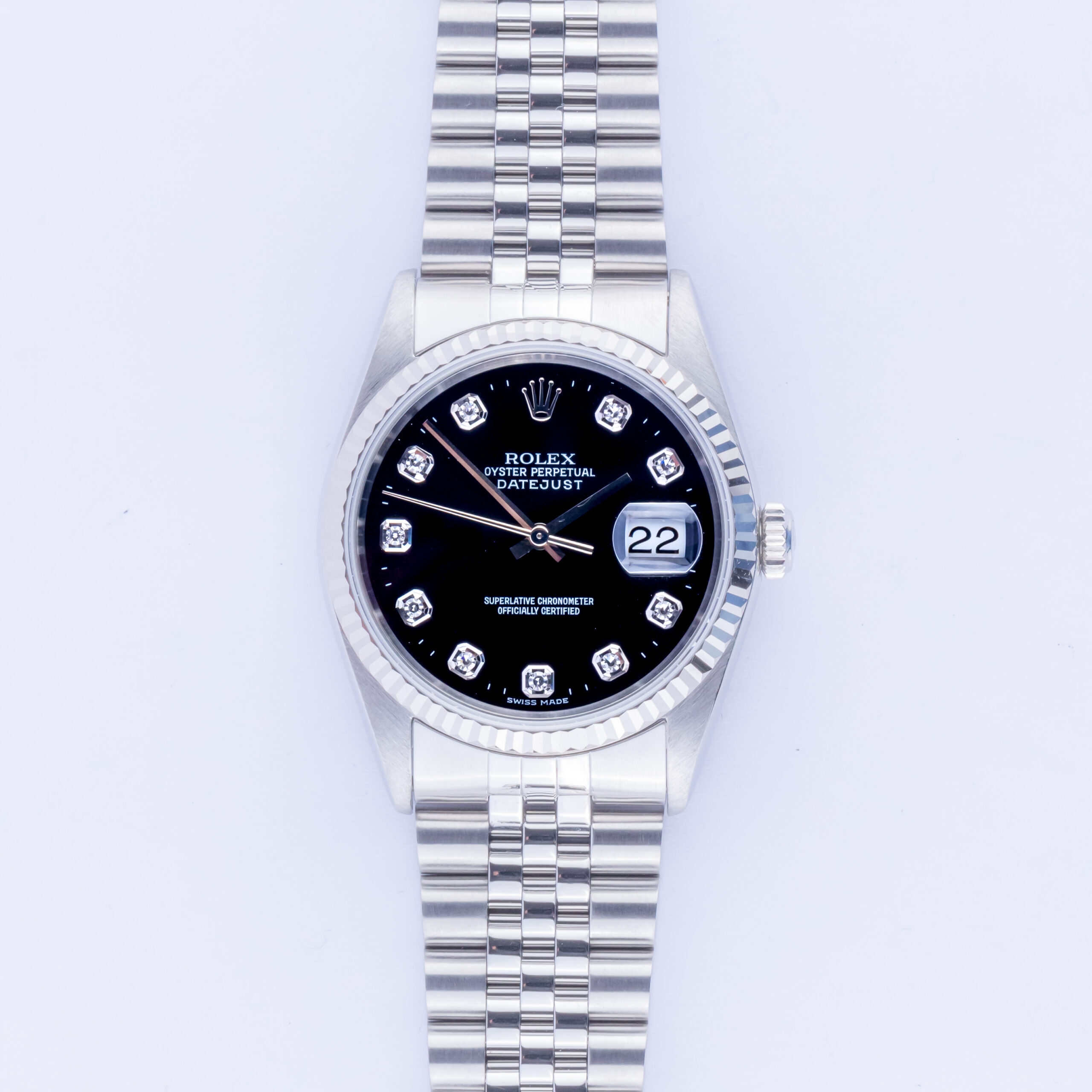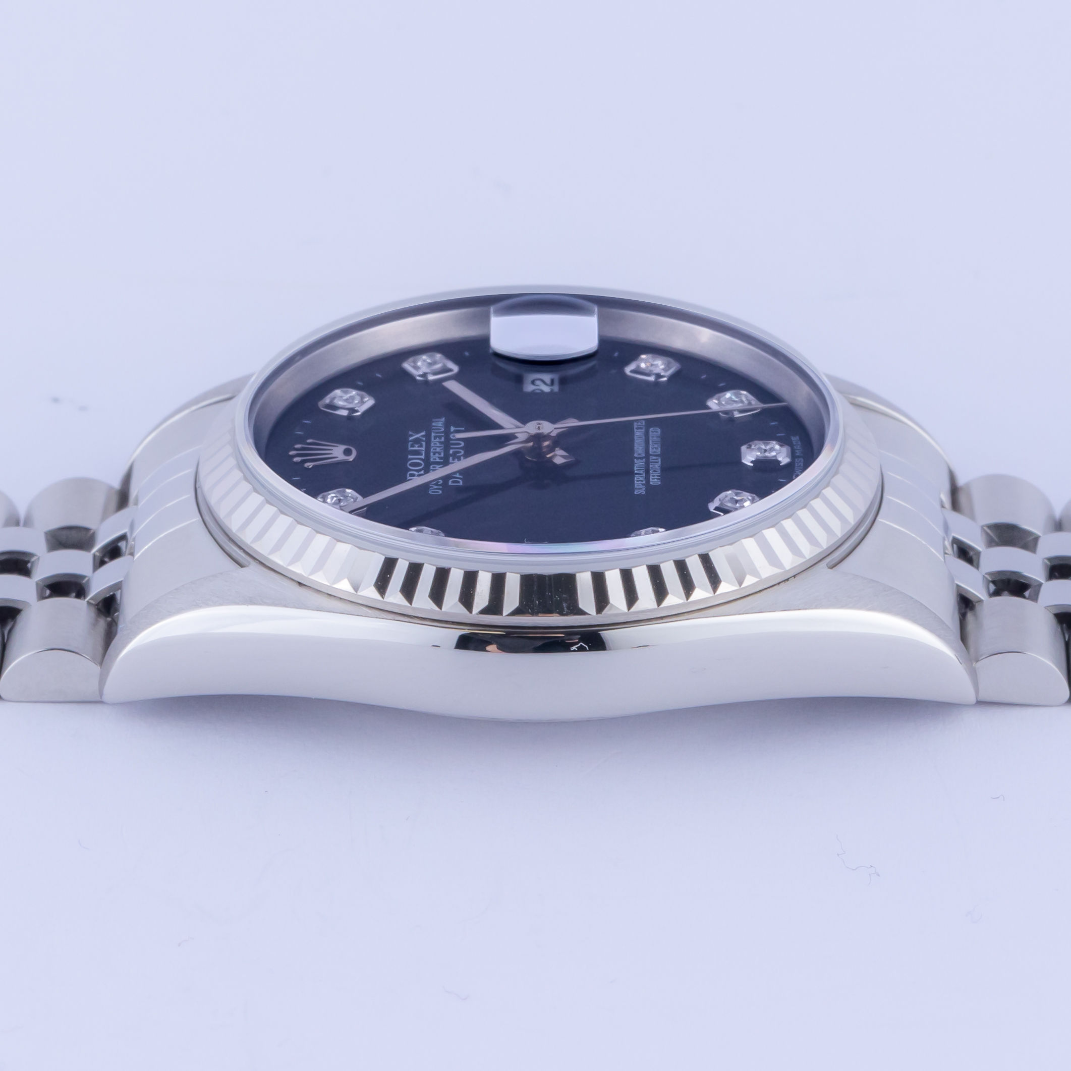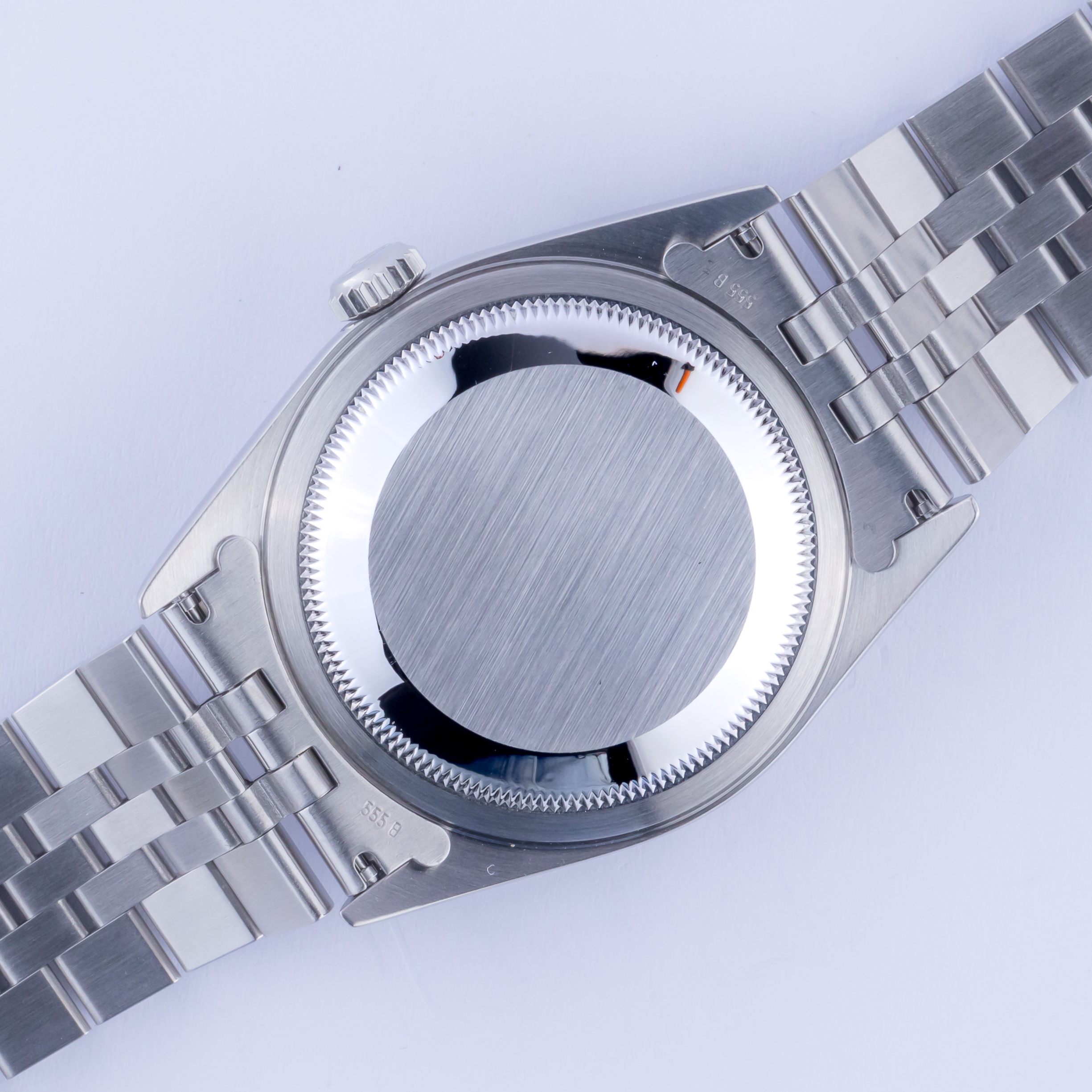 Obwohl viele die 36-mm-Breite im Vergleich zu aktuellen Herrenuhren als nominal betrachten, sieht die Rolex Datejust 16234 am Handgelenk eher wie eine 40-mm-Uhr aus. Diese Vintage-Rolex ist mit dem zuverlässigen und stets präzisen Automatikwerk Kaliber 3135 Perpetual ausgestattet, für das Rolex berühmt ist. Es ist außerdem COSC-zertifiziert und wird von echten Handwerkern zusammen mit der von Rolex hergestellten Breguet-Spirale gefertigt. Dieser elegante Zeitmesser verfügt über die revolutionäre Quickset-Datumsfunktion, die die Datejust-Modelle bei ihrem Erscheinen auf die Landkarte setzte.
