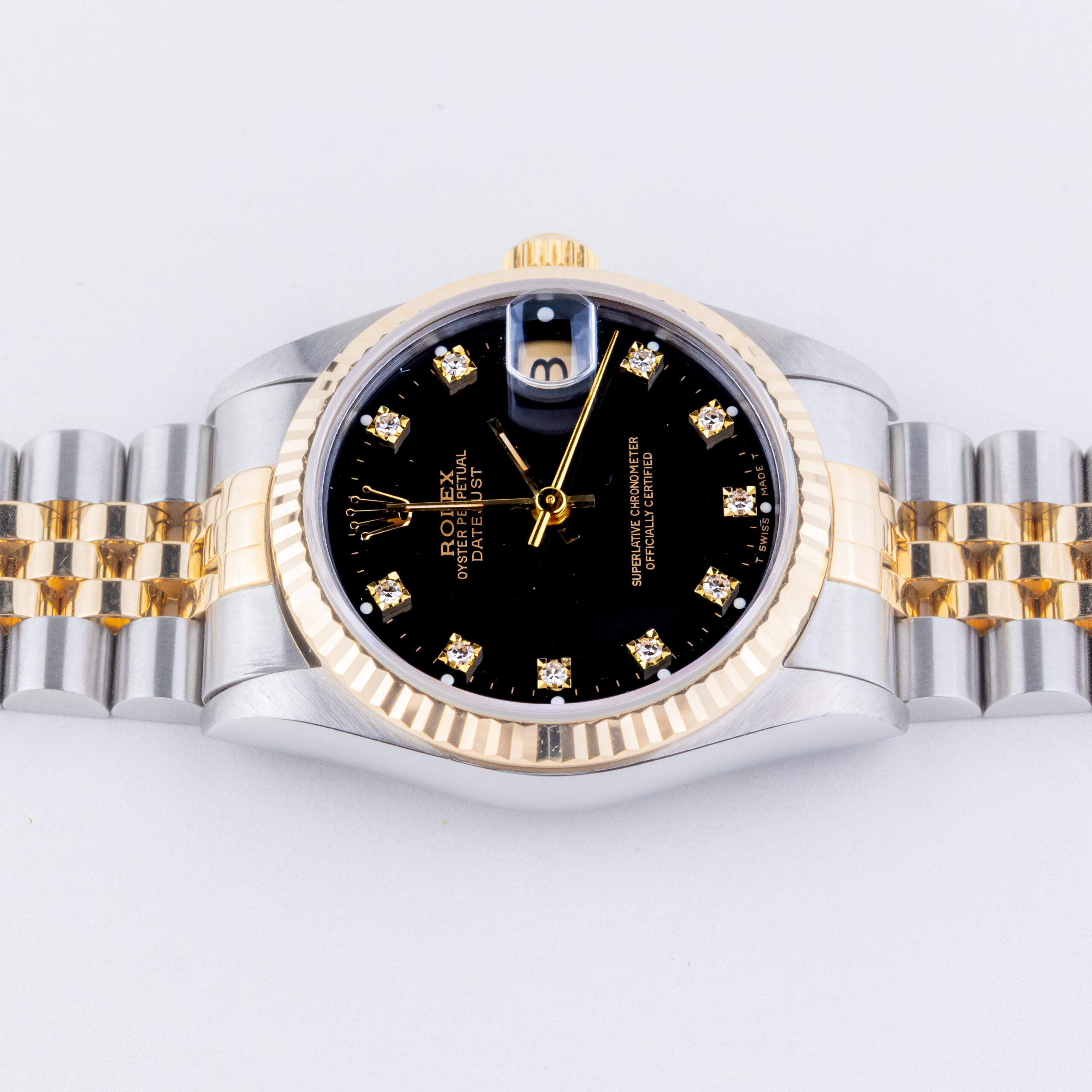 Rolex Oyster Perpetual Datejust Mid-Size Black Diamond 68273 1995 (Vollständiger Satz)