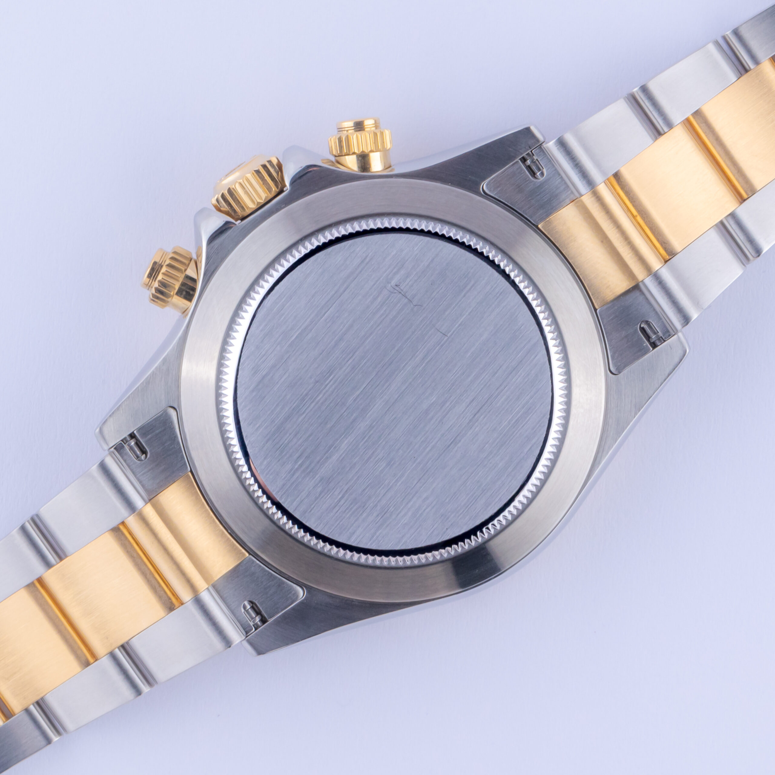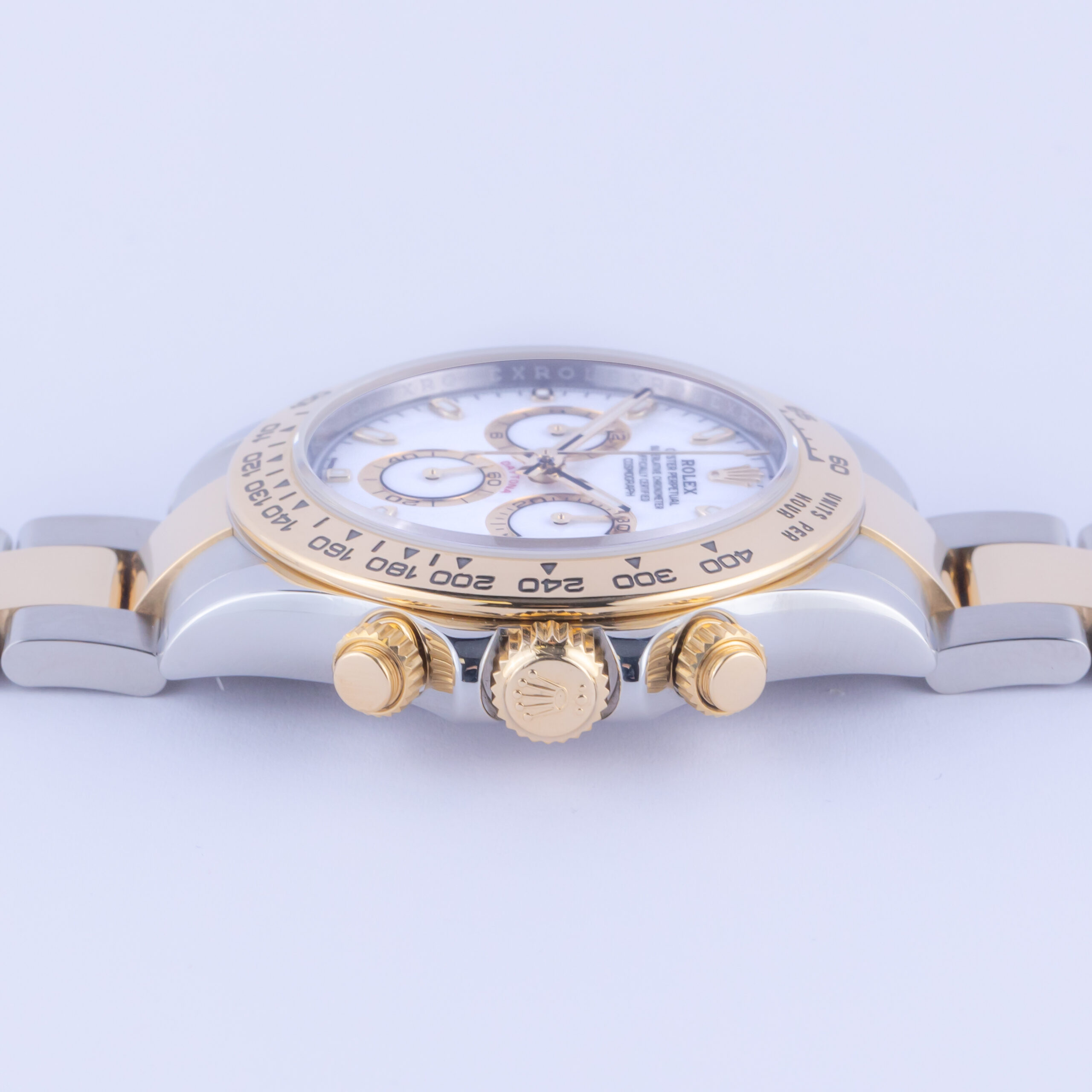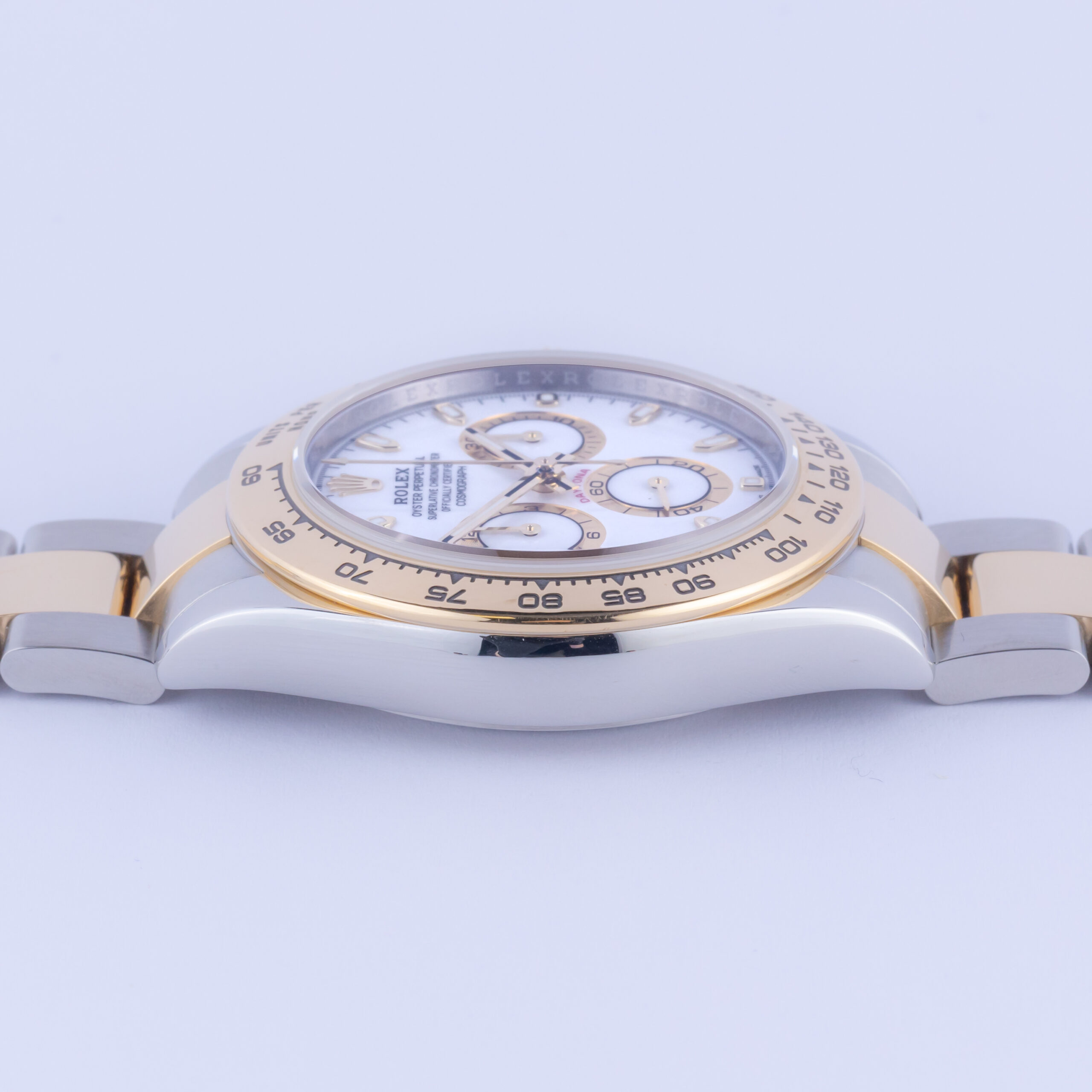 Rolex Daytona Referenz 116503 aus dem Jahr 2021 mit komplettem Set. Die Rolex Daytona Referenz 116503 misst ein 40-mm-Gehäuse aus Gold/Edelstahl, verfügt über ein Oyster-Armband aus Gold/Edelstahl und eine Tachymeter-Lünette aus Gelbgold. Die Rolex Daytona 116503 wird von einem hauseigenen 4130 Kaliber angetrieben, das über eine Chronographenfunktion verfügt, mit der Sie Ihre Aktivitäten präzise und einfach messen können.