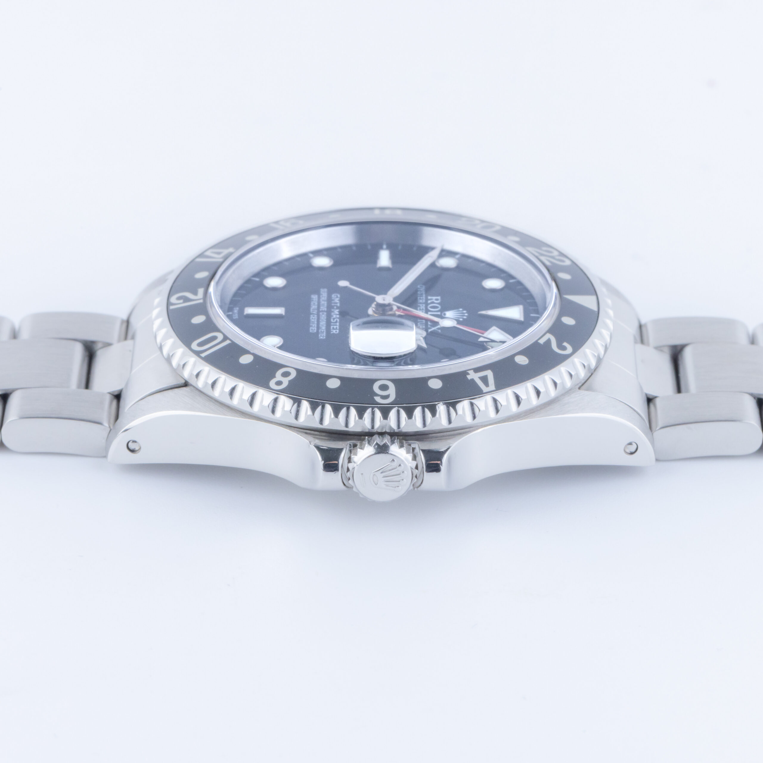 Wenn es um Fliegeruhren geht, gibt es nichts Besseres als die GMT-Master II ref 16710. Erstmals 1989 vorgestellt und mit einer drehbaren Lünette aus Aluminium versehen, verfügt dieser makellose Zeitmesser über ein größeres 40-mm-Gehäuse und ein Saphirglas sowie über ein brandneues Uhrwerk, das es in der GMT-Master-Linie von Rolex noch nicht gab. Diese Uhr bietet dem Träger die Möglichkeit, den 12-Stunden-Zeiger unabhängig einzustellen, ohne die Lünette verstellen zu müssen. Das Uhrwerk der GMT-Master II 16710 wird von dem Kal. 3185 angetrieben, das dieses Rolex-Modell zu einem wahren Meisterwerk macht.