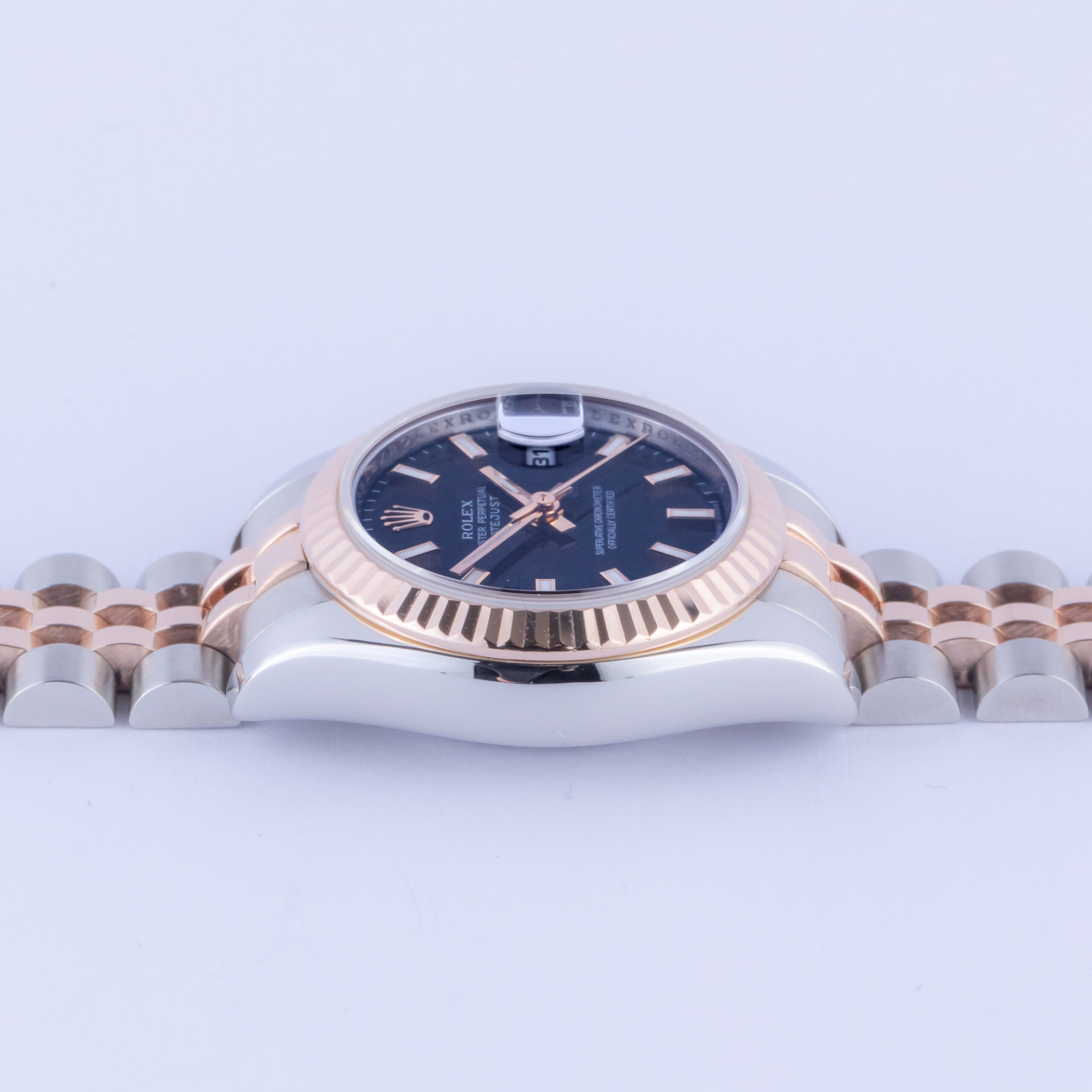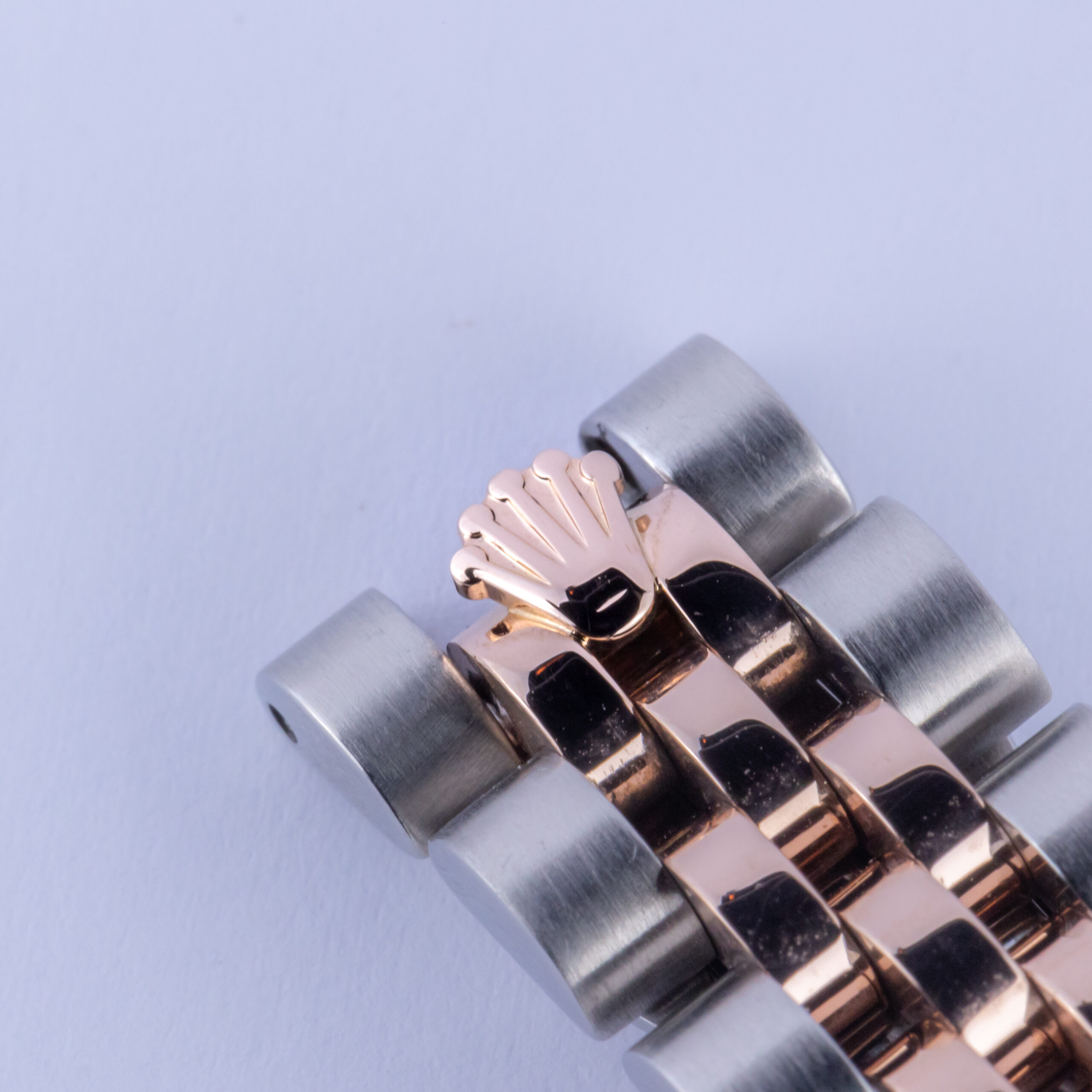 Rolex Oyster Perpetual Lady-Datejust Referenz 179171 aus dem Jahr 2005 mit komplettem Set. Die Lady-Datejust 179171 hat ein 26-mm-Gehäuse aus Roségold und Edelstahl, ein zweifarbiges Jubiläumsarmband mit verdeckter Kronenschließe und eine Lünette aus 18 Karat Roségold. Diese Lady-Datejust 179171 verfügt über ein Automatikwerk Kaliber 2235 mit Schnellverstellung des Datums, ein kratzfestes Saphirglas und ein schwarzes Zifferblatt mit Superluminova-Zeigern.