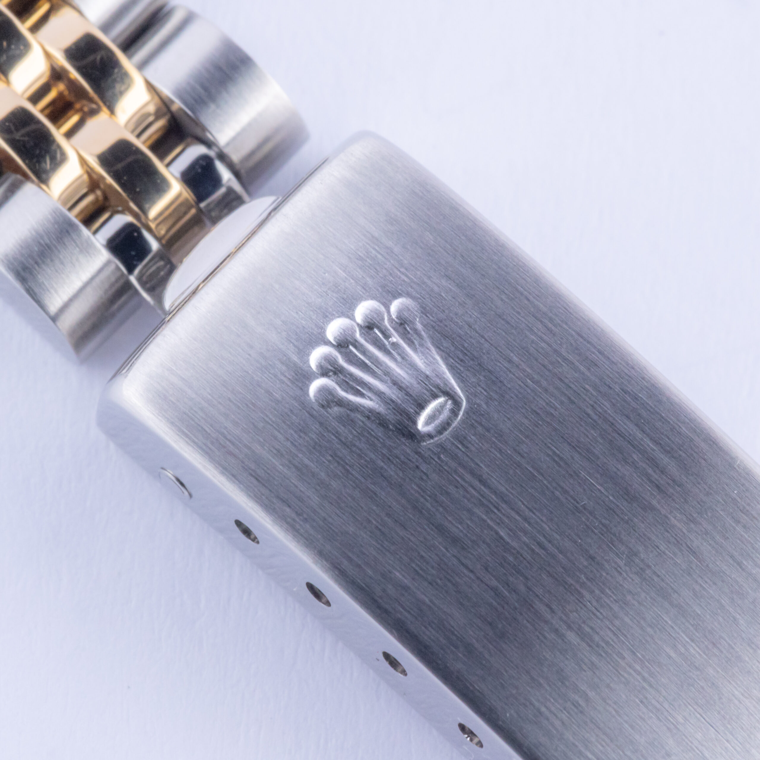 Rolex Oyster Perpetual Lady-Datejust Referenz 69173 aus dem Jahr 1991 mit komplettem Set. Die Lady-Datejust 69173 misst eine 26mm Gold und Edelstahl-Gehäuse, zwei-Ton-Jubiläum Armband und geriffelte 14k Gold Lünette. Diese Lady-Datejust 69173 verfügt über ein Automatikwerk Kaliber 2135 mit Quickset Datum Funktion, eine Kratzfestigkeit Saphirglas und ein champagner Zifferblatt mit diamanten index.