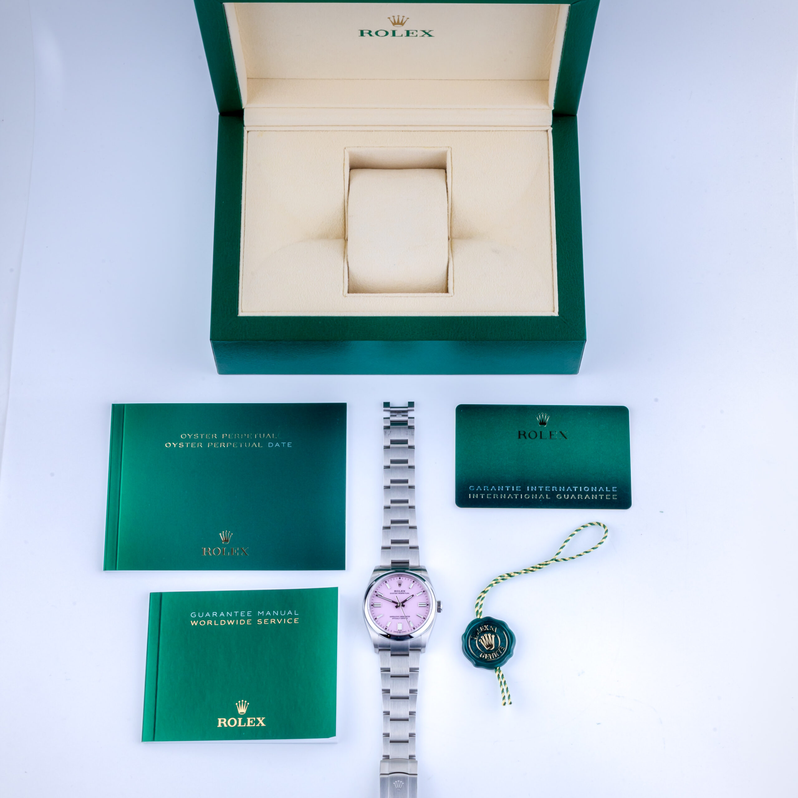 Rolex Oyster Perpetual Candy Pink 126000 2022 (Vollständiger Satz)