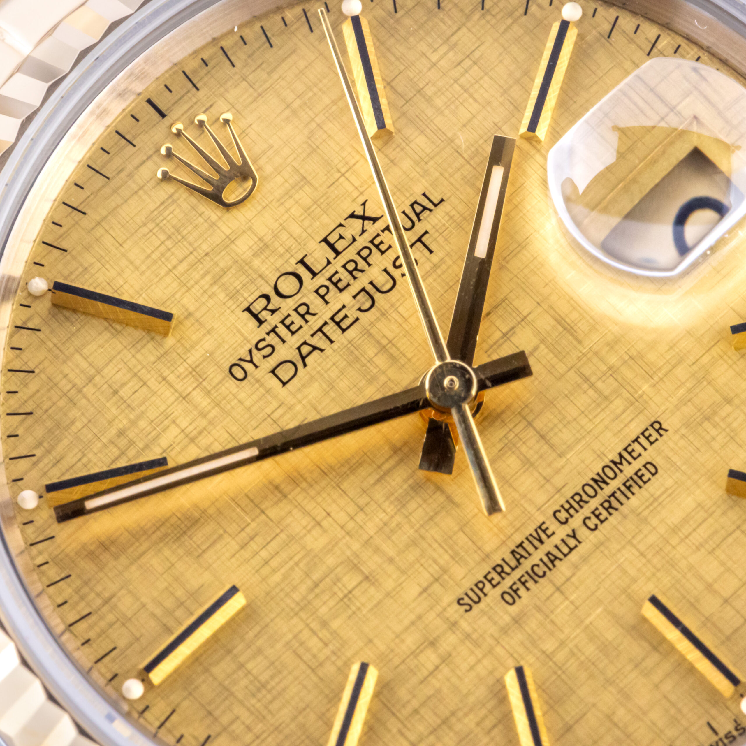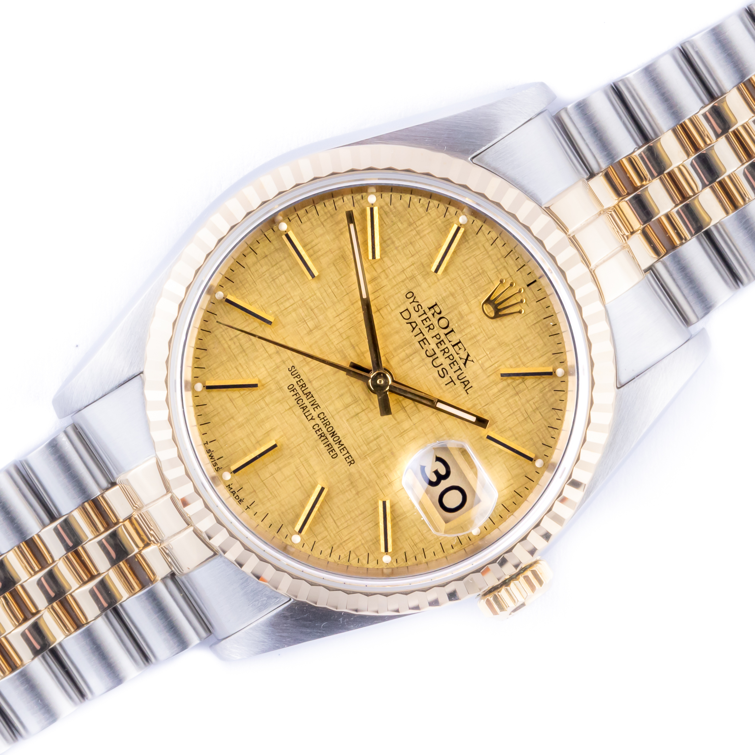 Rolex Oyster Perpetual Datejust Champagne Linen 16233 1989 (Vollständiger Satz)