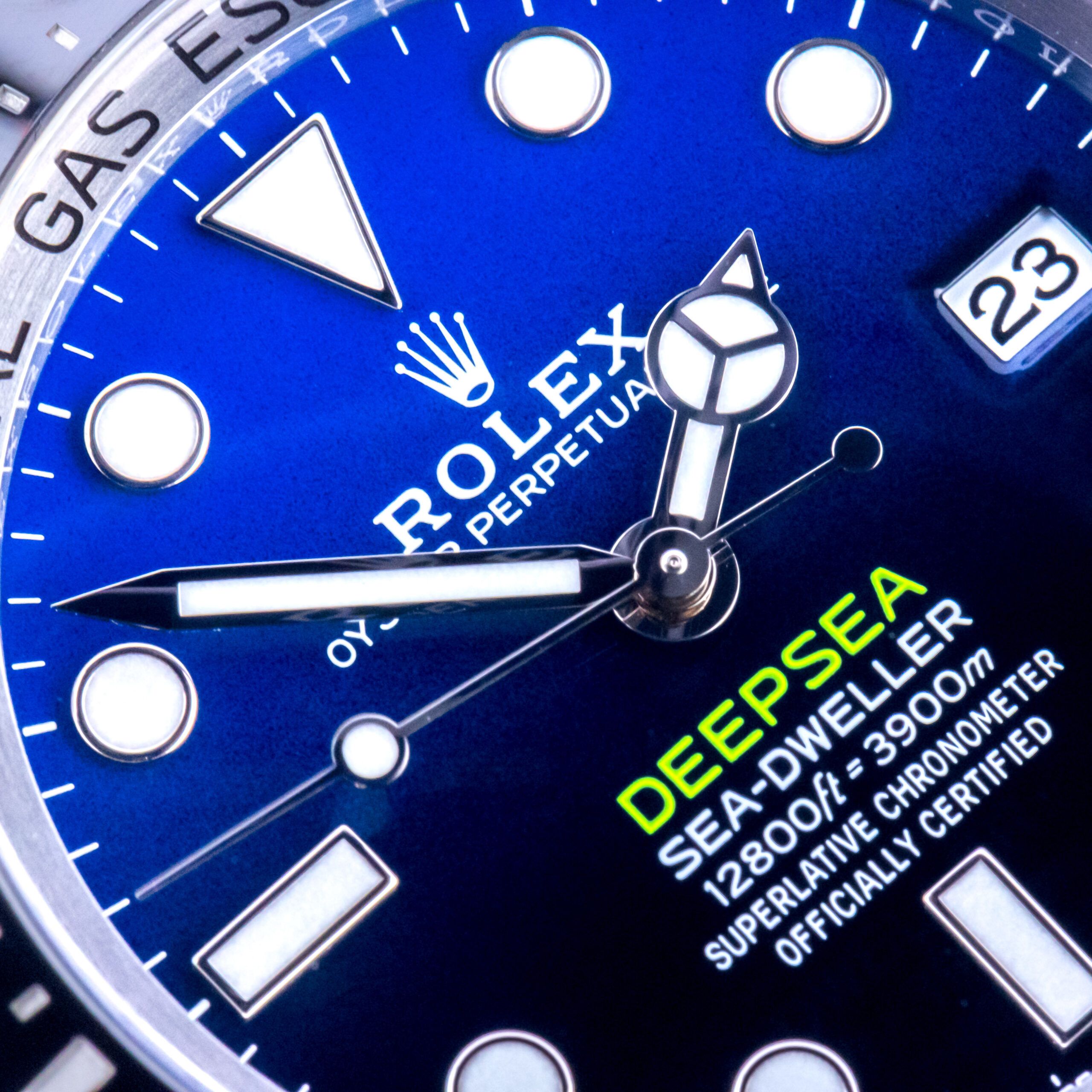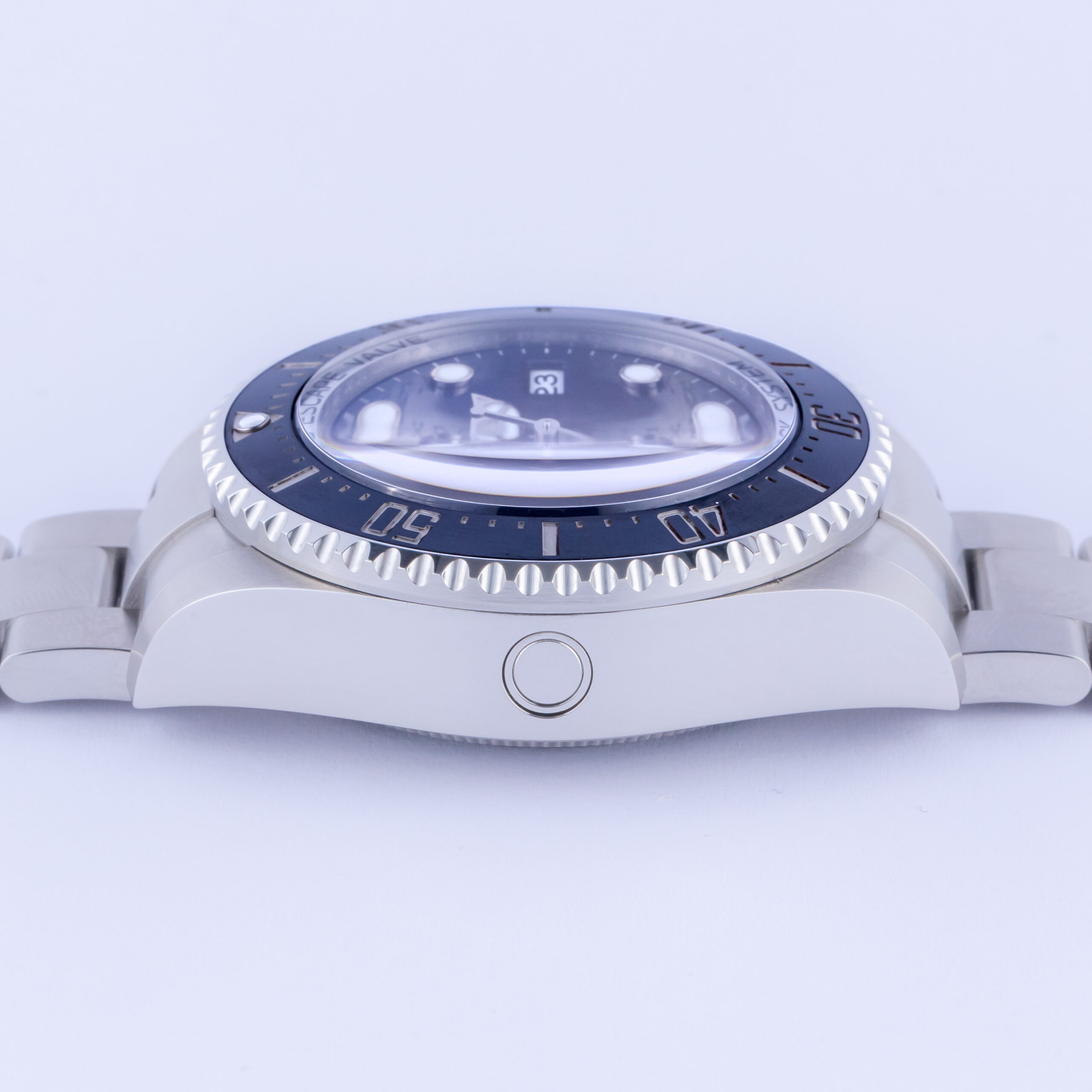 Rolex Oyster Perpetual Sea-Dweller Referenz 136660 aus dem Jahr 2023. Die Rolex Sea-Dweller 136660 hat ein 44-mm-Stahlgehäuse, ein Oyster-Stahlband mit Oyster-Schließe und eine drehbare Aluminiumlünette (schwarze Lünette). Die Sea-Dweller 136660 verfügt über ein Automatikwerk Kaliber 3235 mit Schnellverstellung des Datums, ein kratzfreies Saphirglas und ein blaues ‚James Cameron‘ Zifferblatt mit Chromalight-Anzeige. Diese Uhr wird mit der Originalbox, der Rolex-Karte, den Handbüchern und der 4-Jahres-Garantie von Rolex geliefert.