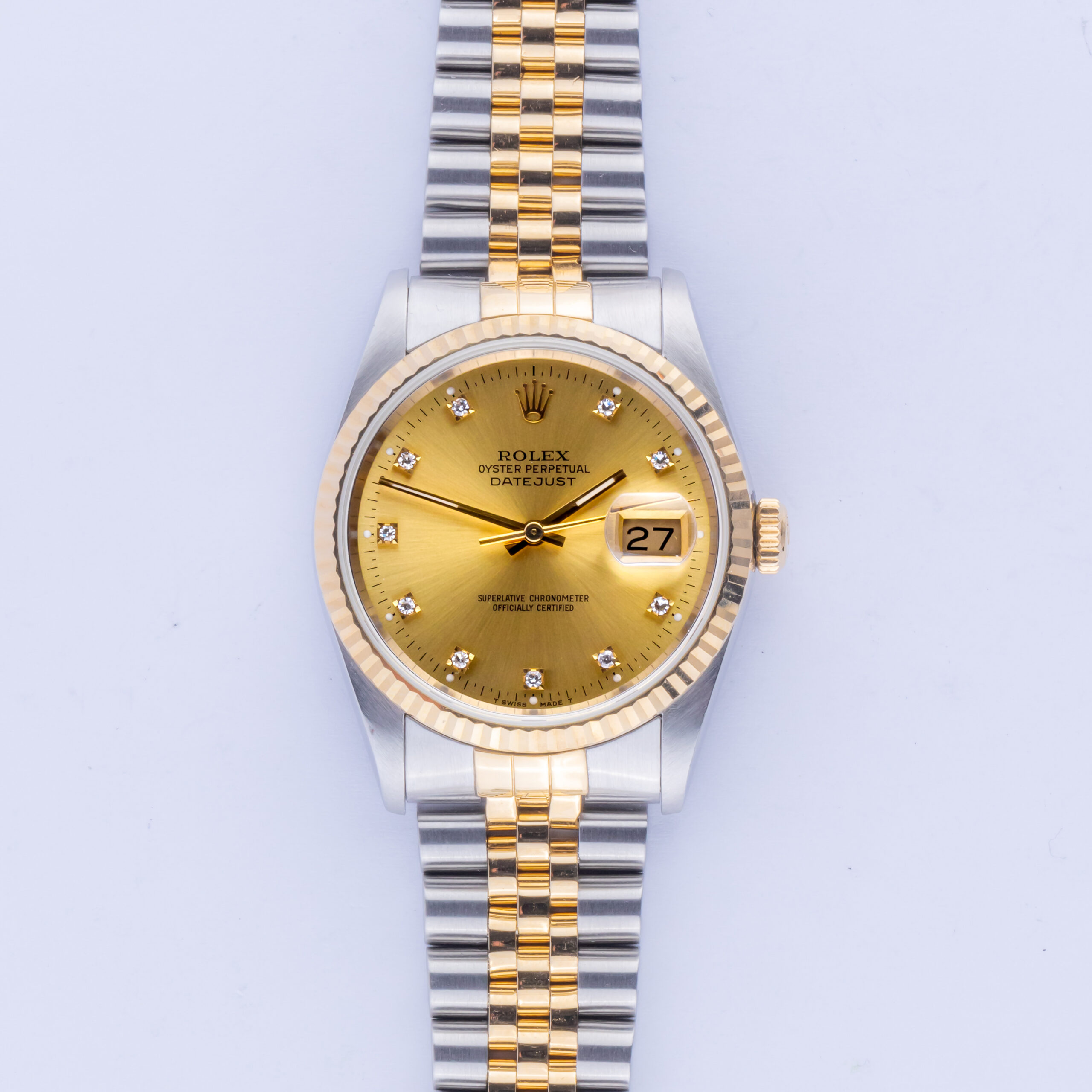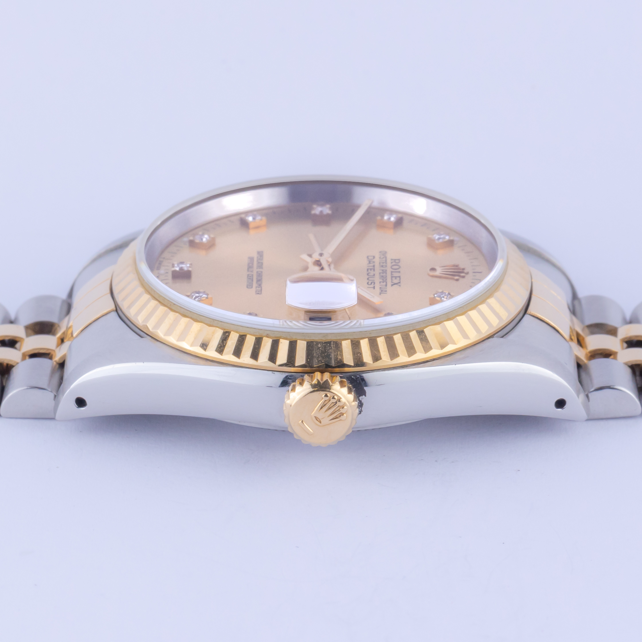 Rolex Oyster Perpetual Datejust Champagne Diamond 16233 1990 (Volledige Set)