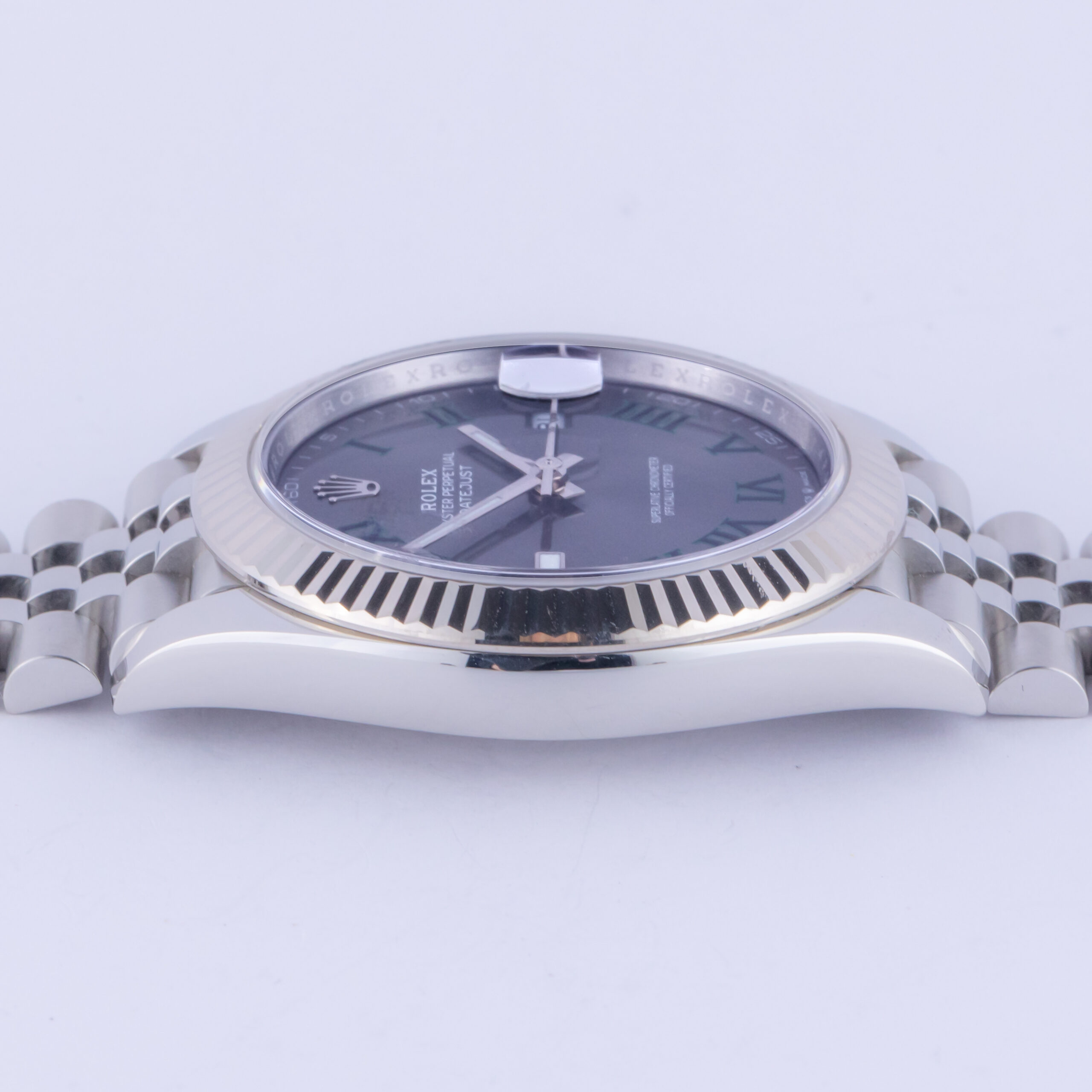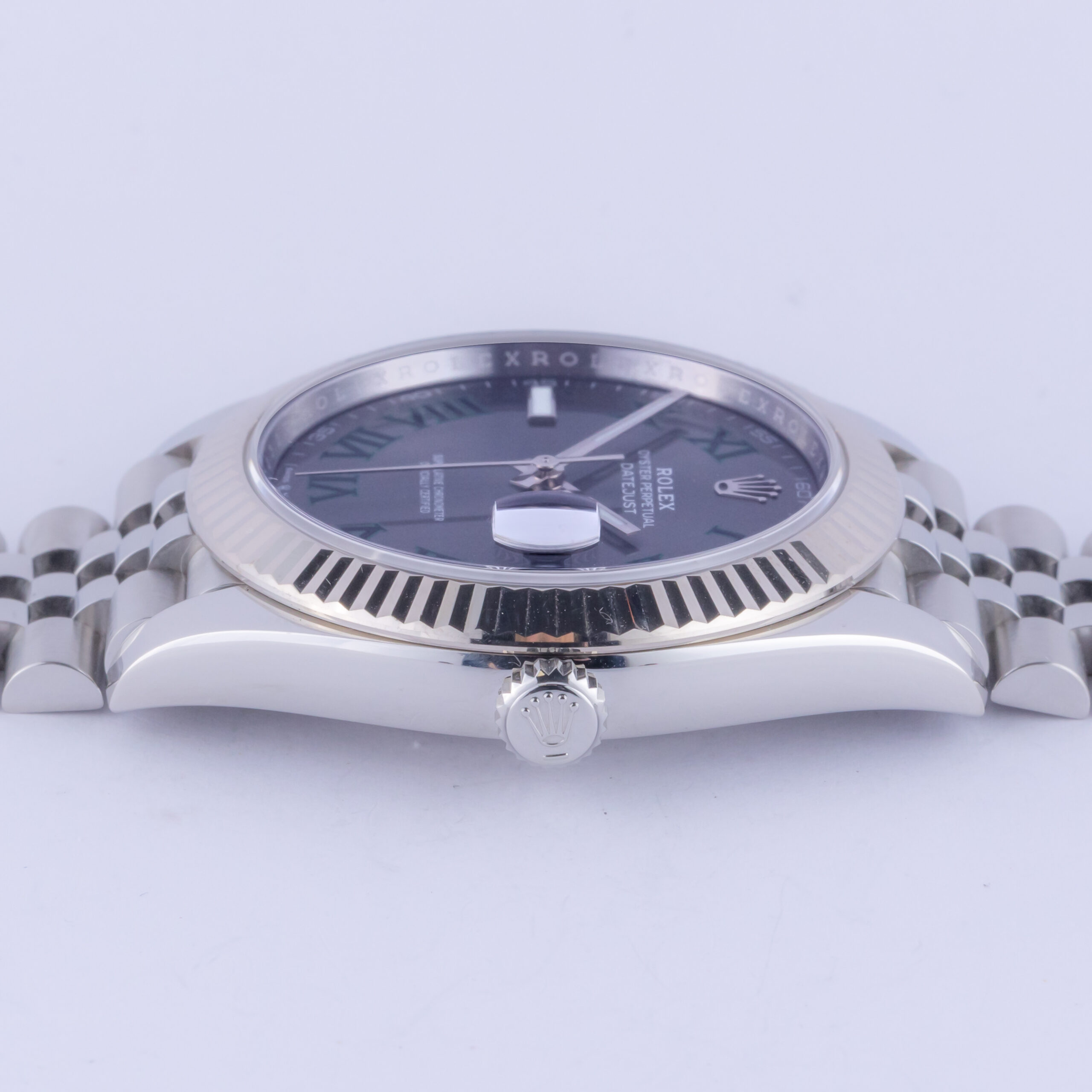 Rolex Oyster Perpetual Datejust reference 126334 from 2023 including full set. The Datejust 126334 measures a 41mm stainless steel case, a stainless steel (904L) Jubilee bracelet with Oysterclasp and a fluted 18K white gold bezel. This Datejust 126334 features an automatic movement caliber 3235 with a quickset date function, a scratch resistance sapphire crystal and Wimbledon dial.