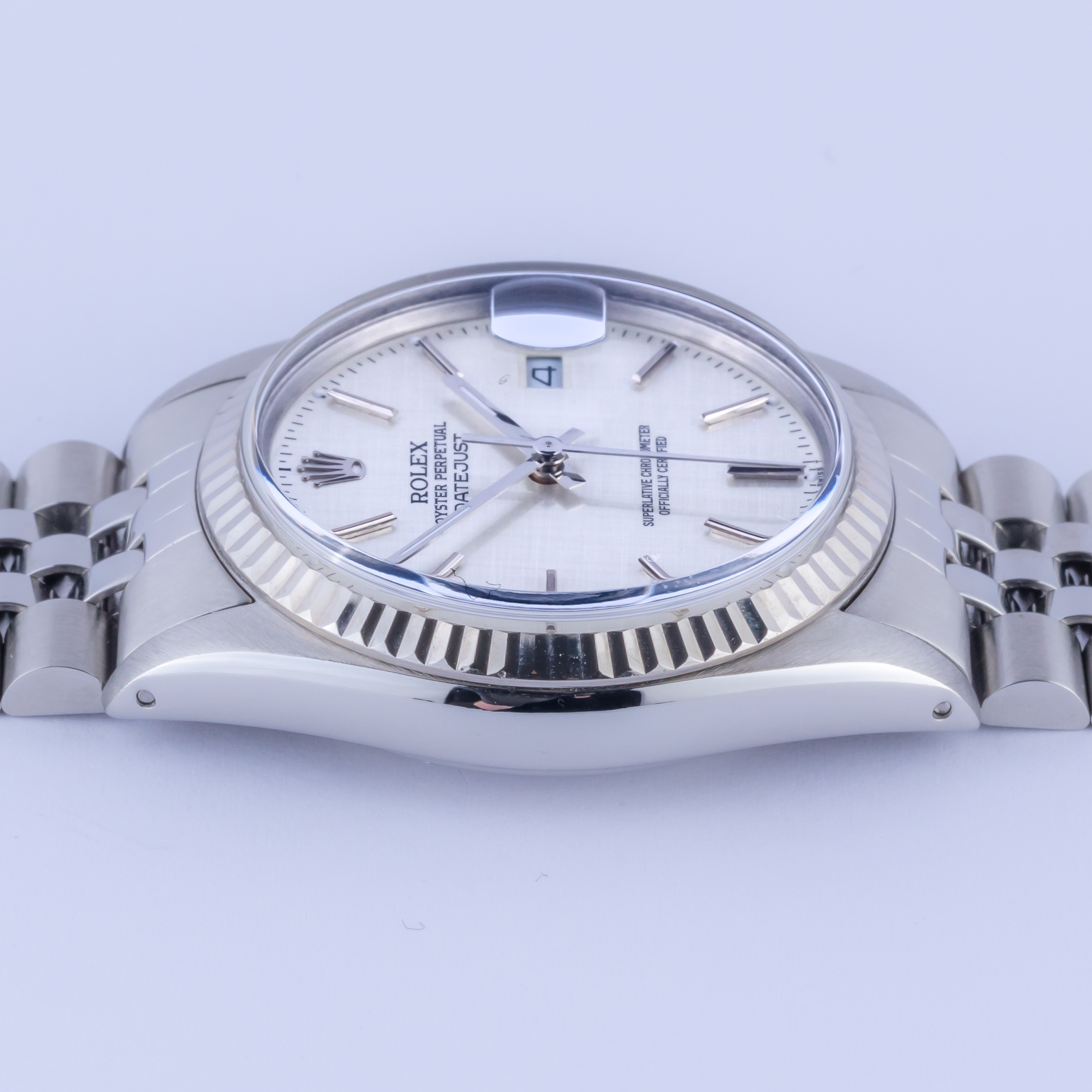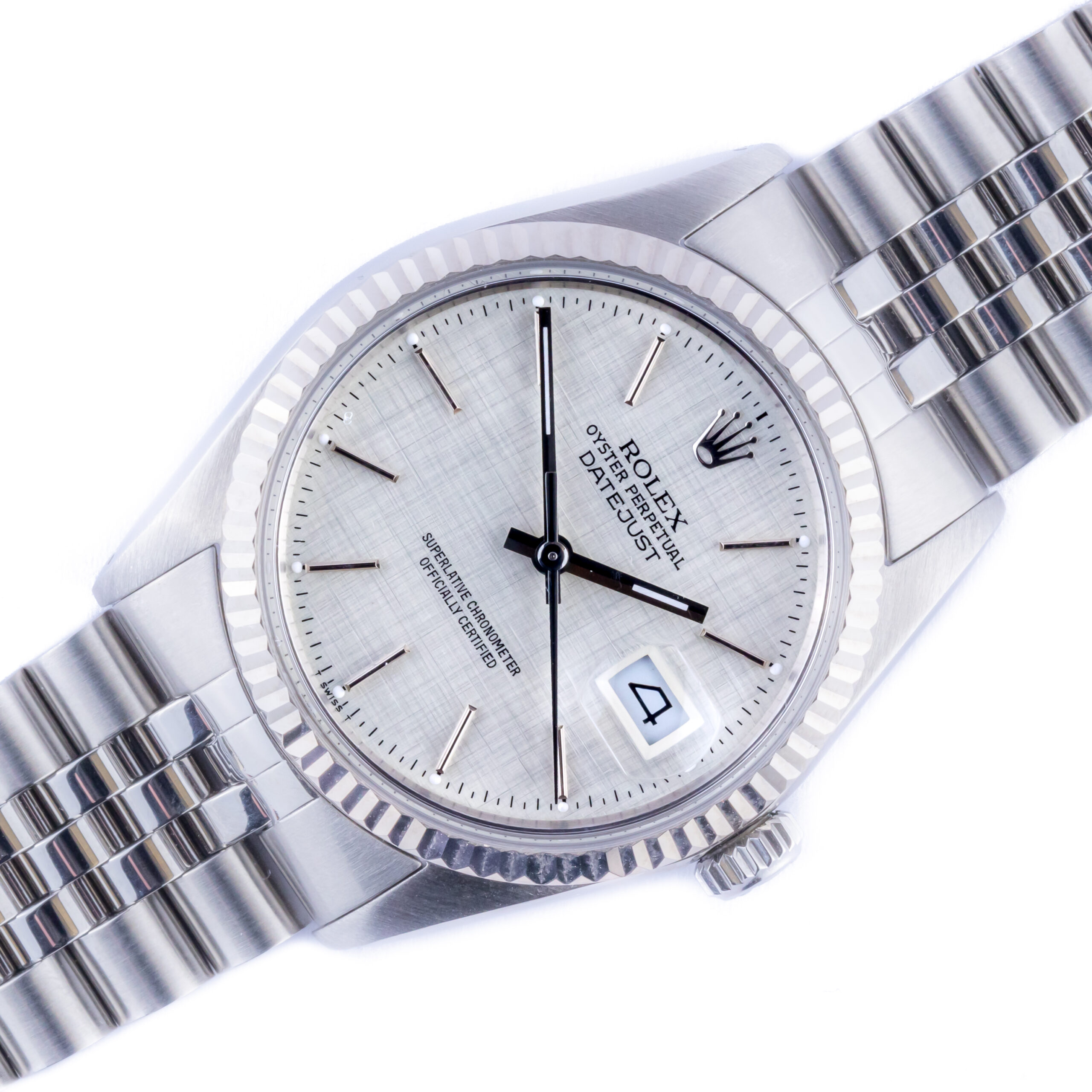 And features the automatically changing date window prominently displayed at the 3-hour marker and has a magnifying cyclops lens for convenience. The 16014 model of the Datejust introduced a new caliber movement mechanism, and this one has the updated 3035 self-winding movement that is COSC certified to give you the most accurate reading possible every time you wear it.