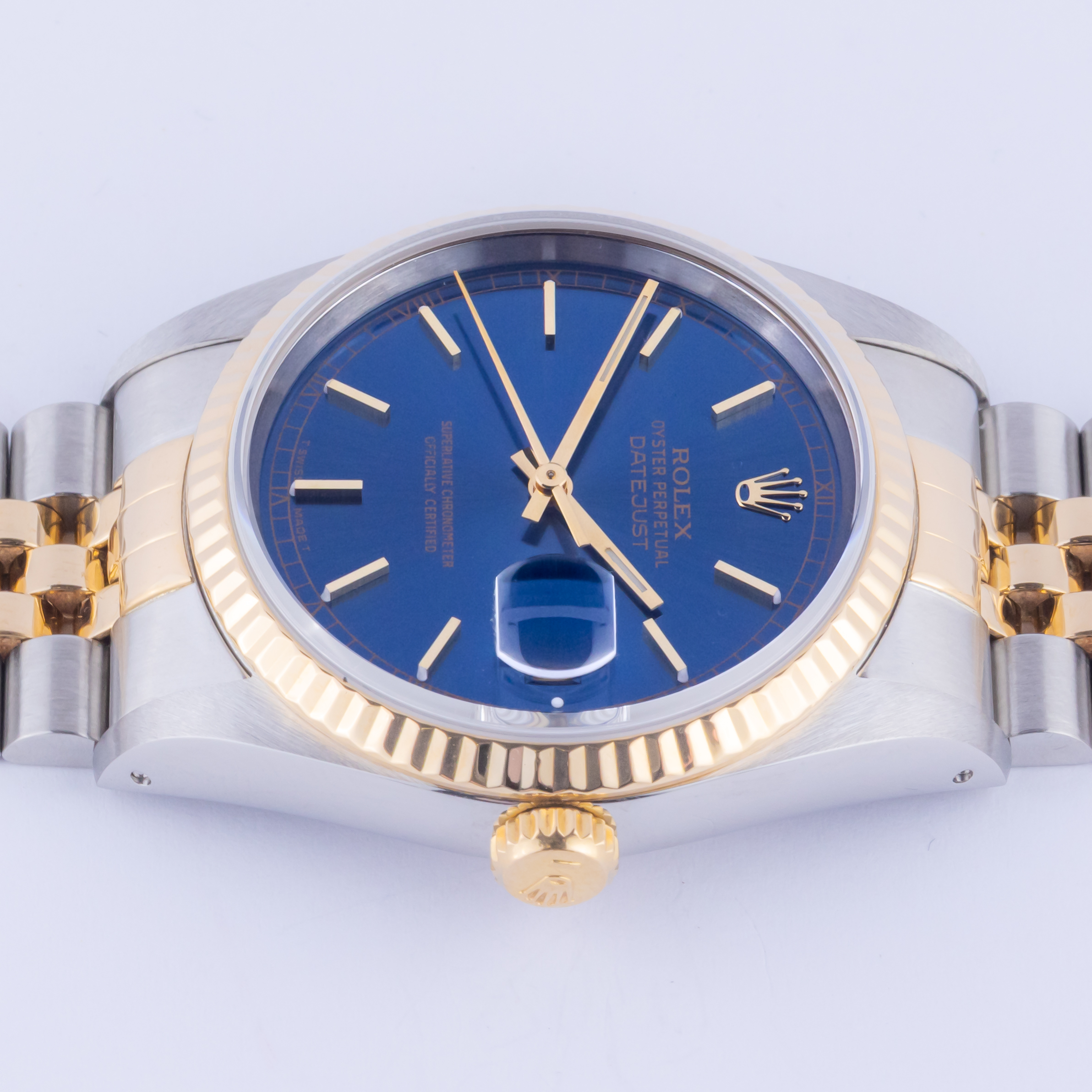 From the 18k gold fluted bezel, the 3-hour Cyclops eye date magnifier to the expertly designed combination of stainless steel and yellow gold (18k), the Rolex Datejust 16233 is the true epitome of iconic Rolex watches. This model first appeared in luxury jewelers in 1988 and packed the punch of powerful upgrades which come with a new reference number “16233”. Rolex replaced the go-to acrylic crystal for the first time and fitted the Datejust with a sapphire crystal instead, which makes it appear a bit more modern.