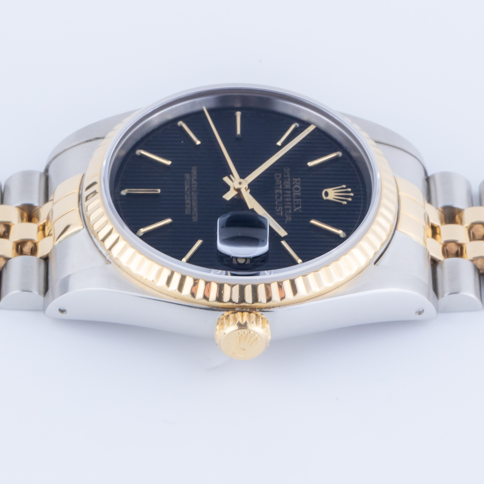 From the 18k gold fluted bezel, the 3-hour Cyclops eye date magnifier to the expertly designed combination of stainless steel and yellow gold (18k), the Rolex Datejust 16233 is the true epitome of iconic Rolex watches. This model first appeared in luxury jewelers in 1988 and packed the punch of powerful upgrades which come with a new reference number “16233”. Rolex replaced the go-to acrylic crystal for the first time and fitted the Datejust with a sapphire crystal instead, which makes it appear a bit more modern.