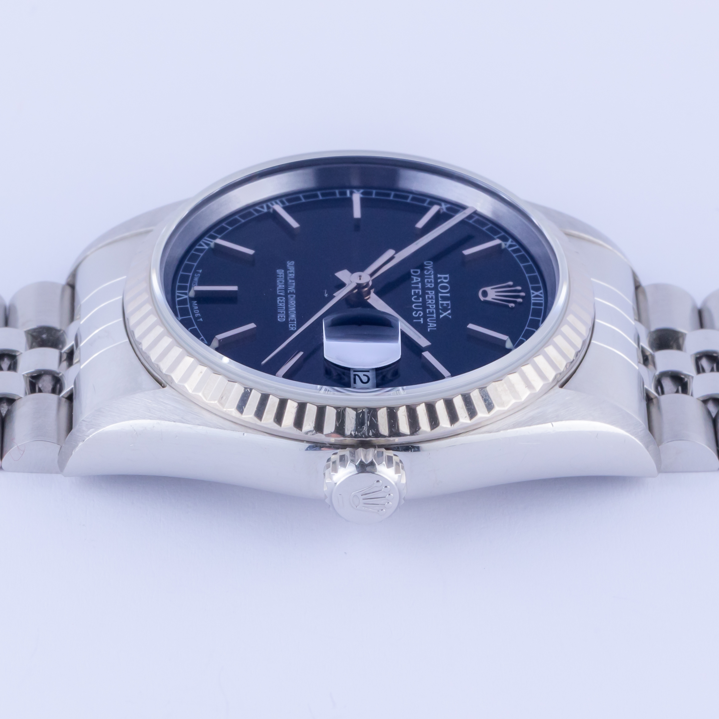 Even though many consider the 36mm width nominal compared to current men’s watch styles, the Rolex Datejust 16234 looks more like a 40mm watch when worn on your wrist. This vintage Rolex features the dependable and always accurate Caliber 3135 Perpetual self-winding movement that Rolex is famous for. It is also COSC Chronometer certified that these true artisans’ handcraft along with the Rolex-manufactured Breguet hairspring. Packed within this elegant timepiece is the revolutionary Quickset date feature that puts the Datejust models on the map when they were released.