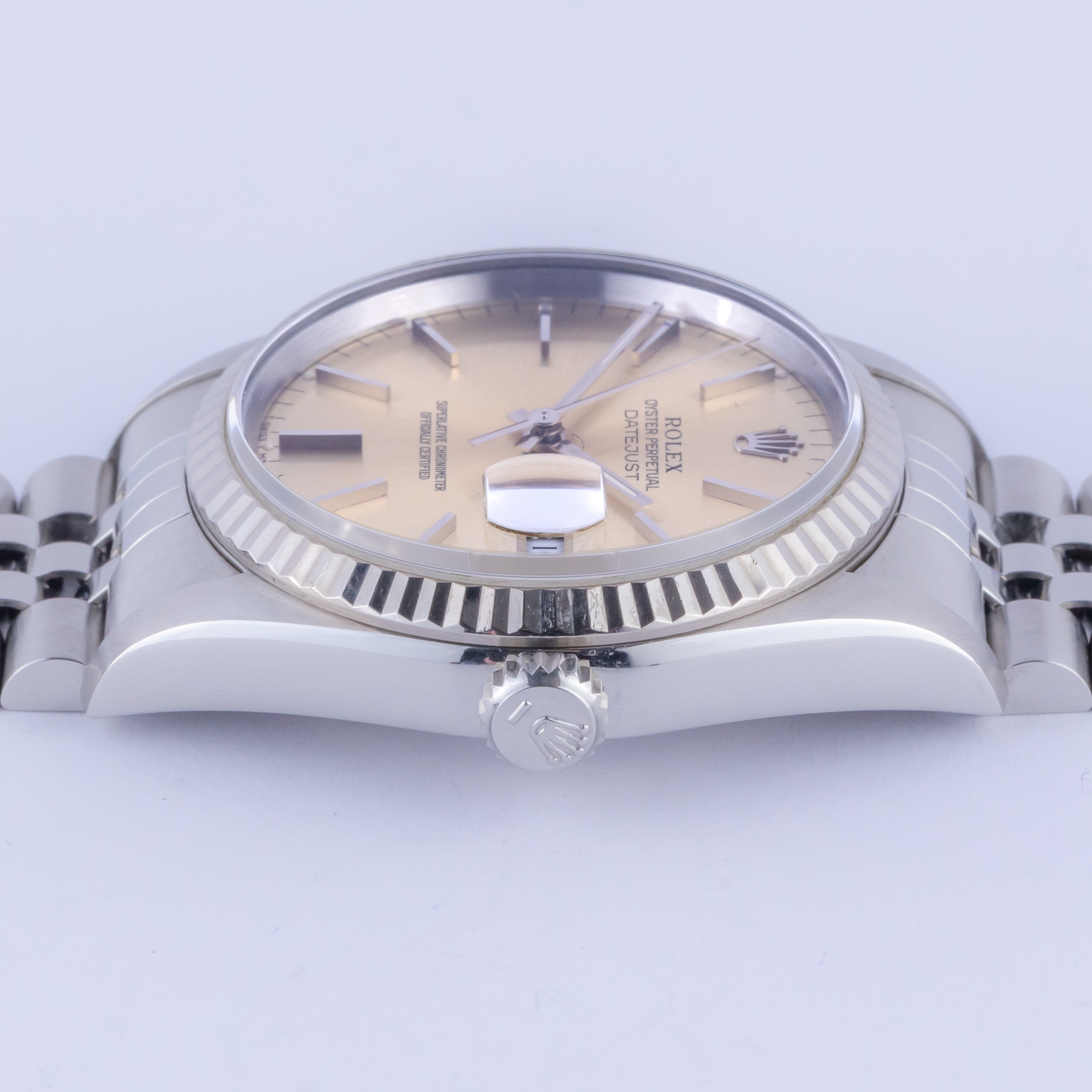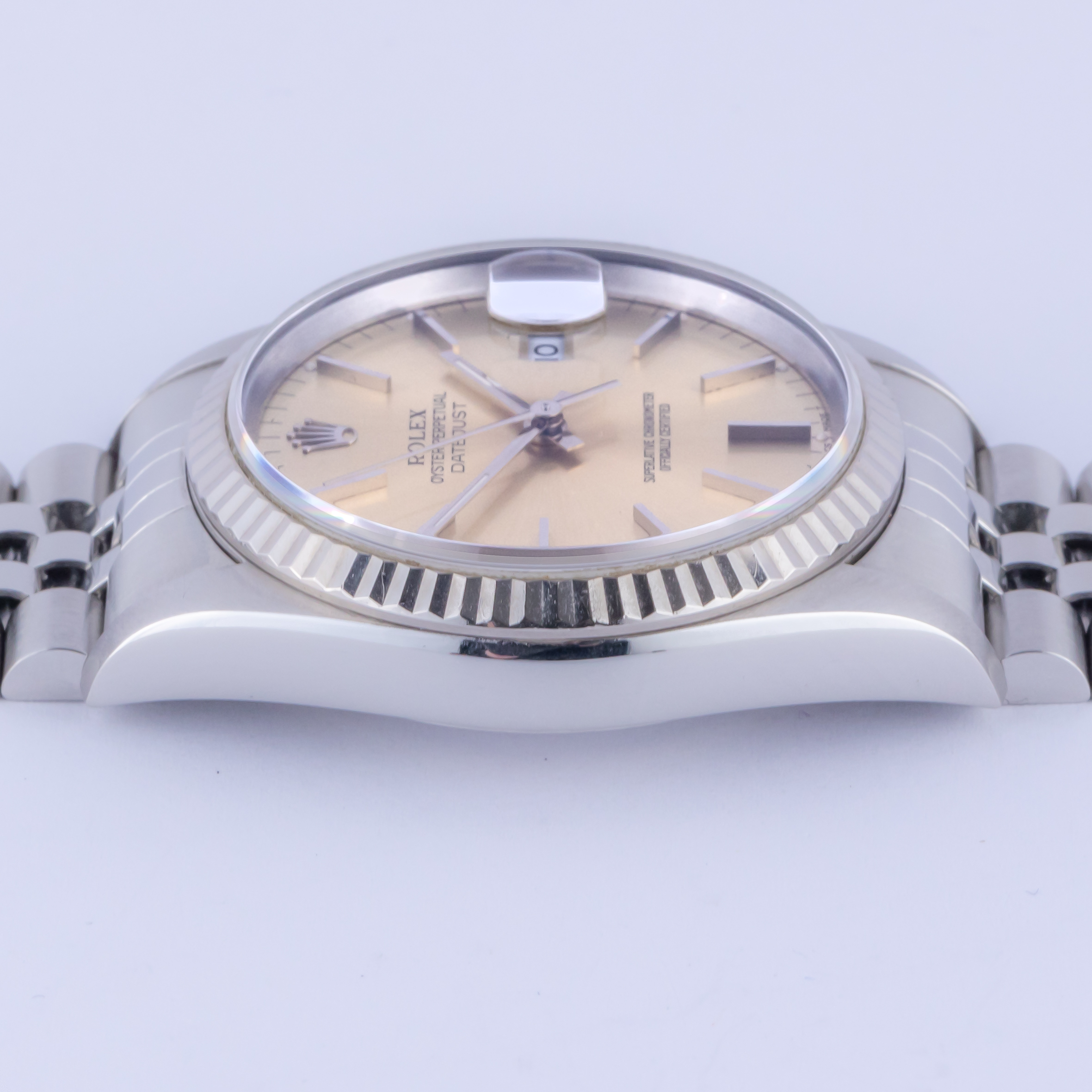 Introduced in 1988, the Rolex Datejust 16234 is the statesman of stainless-steel dress watches and is the people’s choice to provide the ultimate time-keeping tool with the trusted classic style due to its fluted 18k white gold bezel. This model features a 100m water-resistant stainless-steel case (36mm) and stainless steel Jubilee bracelet that screams dress watch at the top of its lungs. Yet the great variety of sunburst or texture dials quietly whispers as this watch is the answer to any occasion that may come your way.