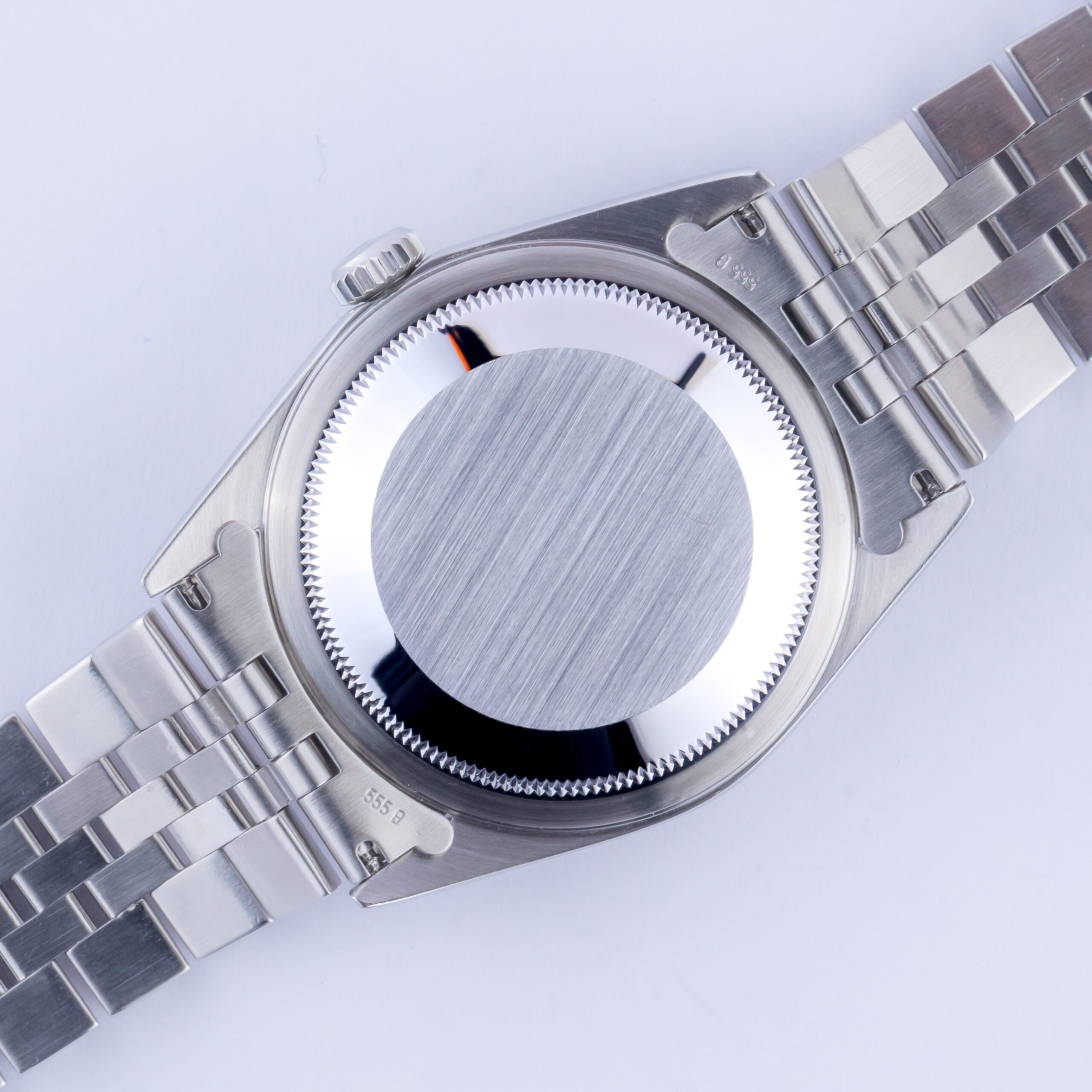Introduced in 1988, the Rolex Datejust 16234 is the statesman of stainless-steel dress watches and is the people’s choice to provide the ultimate time-keeping tool with the trusted classic style due to its fluted 18k white gold bezel. This model features a 100m water-resistant stainless-steel case (36mm) and stainless steel Jubilee bracelet that screams dress watch at the top of its lungs. Yet the great variety of sunburst or texture dials quietly whispers as this watch is the answer to any occasion that may come your way.