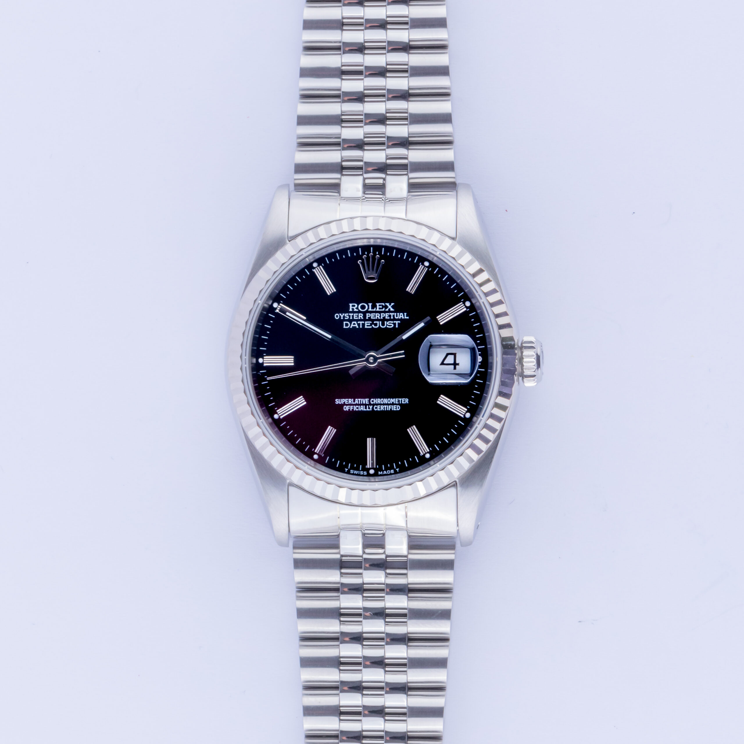 Introduced in 1988, the Rolex Datejust 16234 is the statesman of stainless-steel dress watches and is the people’s choice to provide the ultimate time-keeping tool with the trusted classic style due to its fluted 18k white gold bezel. This model features a 100m water-resistant stainless-steel case (36mm) and stainless steel Jubilee bracelet that screams dress watch at the top of its lungs. Yet the great variety of sunburst or texture dials quietly whispers as this watch is the answer to any occasion that may come your way.