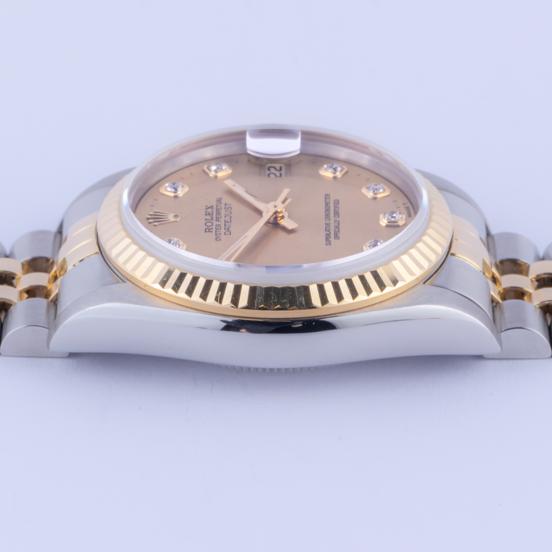Rolex Oyster Perpetual Datejust Mid-Size reference 68273 from 1993 including full set. The Datejust 68273 measures a 31mm gold/stainless steel case, a gold/stainless steel Jubilee bracelet and a fluted 18k gold bezel. This Datejust 68273 features an automatic movement caliber 3135 with quickset date function, a scratch resistance sapphire crystal and a champagne dial with tritium hands and diamond markers.