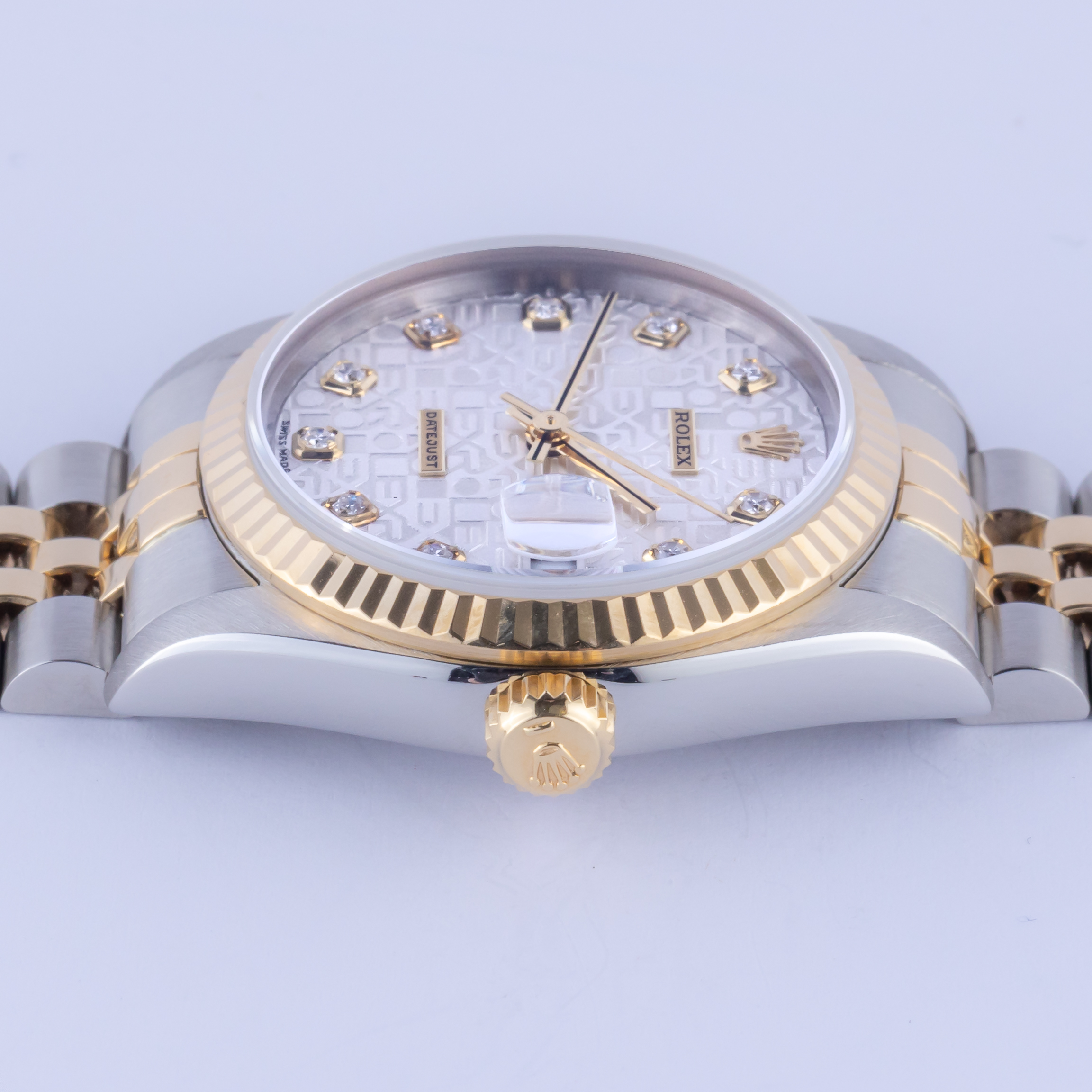 Rolex Oyster Perpetual Datejust Mid-Size reference 68273 from 1995 including full set. The Datejust 68273 measures a 31mm gold/stainless steel case, a gold/stainless steel Jubilee bracelet and a fluted 18k gold bezel. This Datejust 68273 features an automatic movement caliber 3135 with quickset date function, a scratch resistance sapphire crystal and a silver dial with tritium hands and diamond markers.