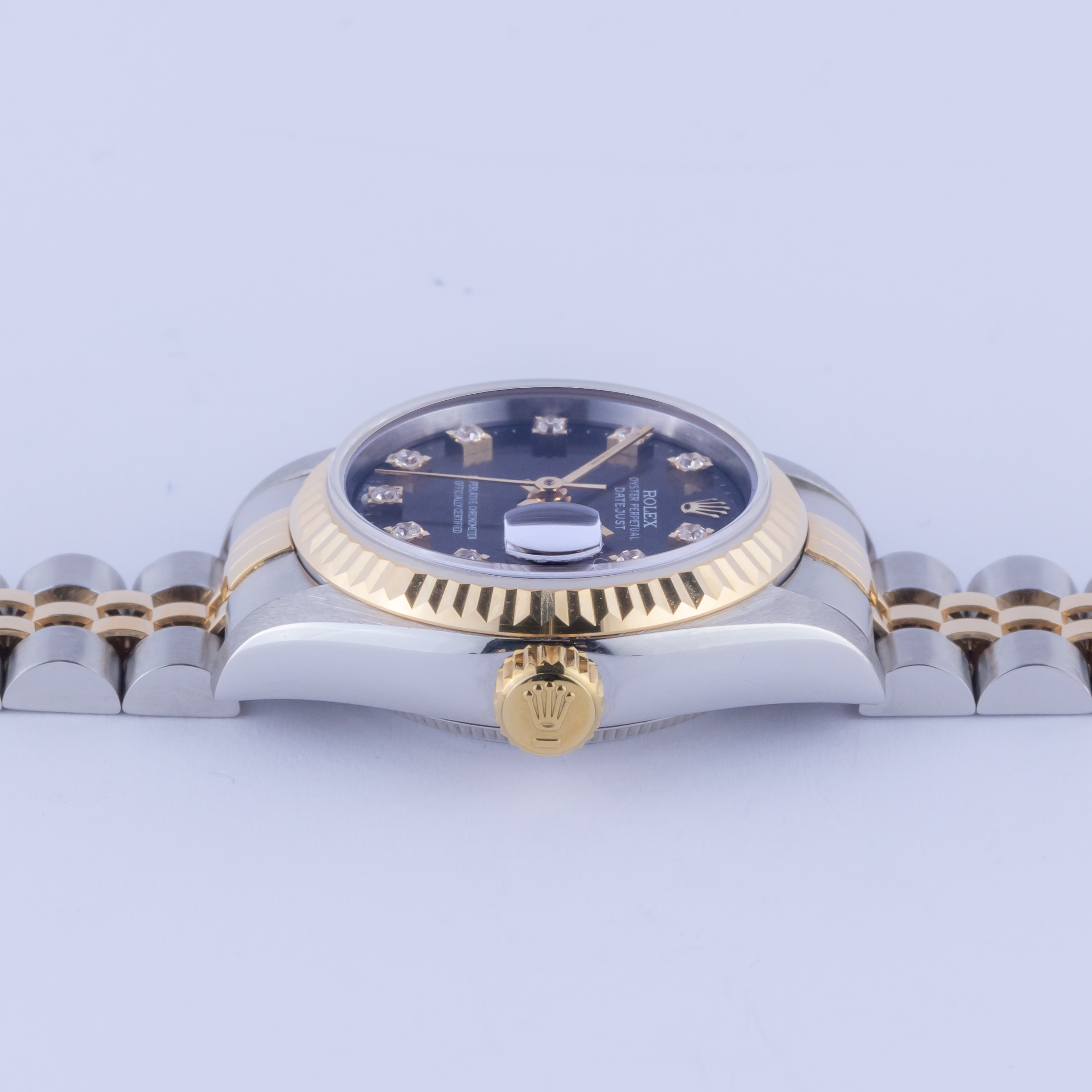 This masterful styling is fully evident in the Rolex Datejust-Lady 69173 making it a trusted choice in a wristwatch for women across the globe who are looking to make a bold statement through their choice of a wearable timepiece. This ladies’ model of the Rolex Datejust collection was produced to the same carefully developed standards as the men’s line, but in a more delicate 26mm case that complemented a woman’s smaller wrist size. Its styling allows for versatility in wear, as it is suitable for both casual and formal occasions. It truly is the perfect Rolex to add to your jewelry box.