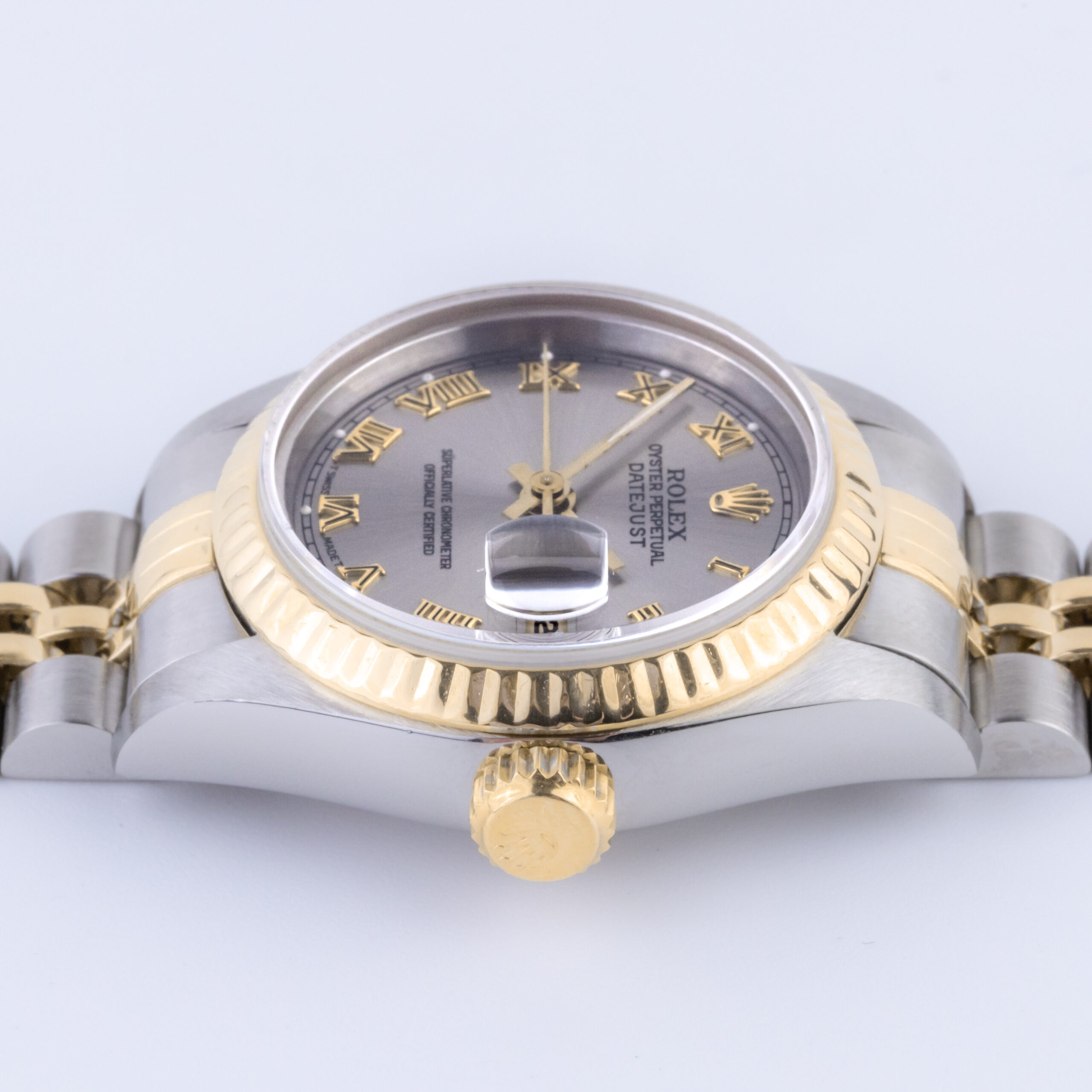 This masterful styling is fully evident in the Rolex Datejust-Lady 69173 making it a trusted choice in a wristwatch for women across the globe who are looking to make a bold statement through their choice of a wearable timepiece. This ladies’ model of the Rolex Datejust collection was produced to the same carefully developed standards as the men’s line, but in a more delicate 26mm case that complemented a woman’s smaller wrist size. Its styling allows for versatility in wear, as it is suitable for both casual and formal occasions. It truly is the perfect Rolex to add to your jewelry box.
