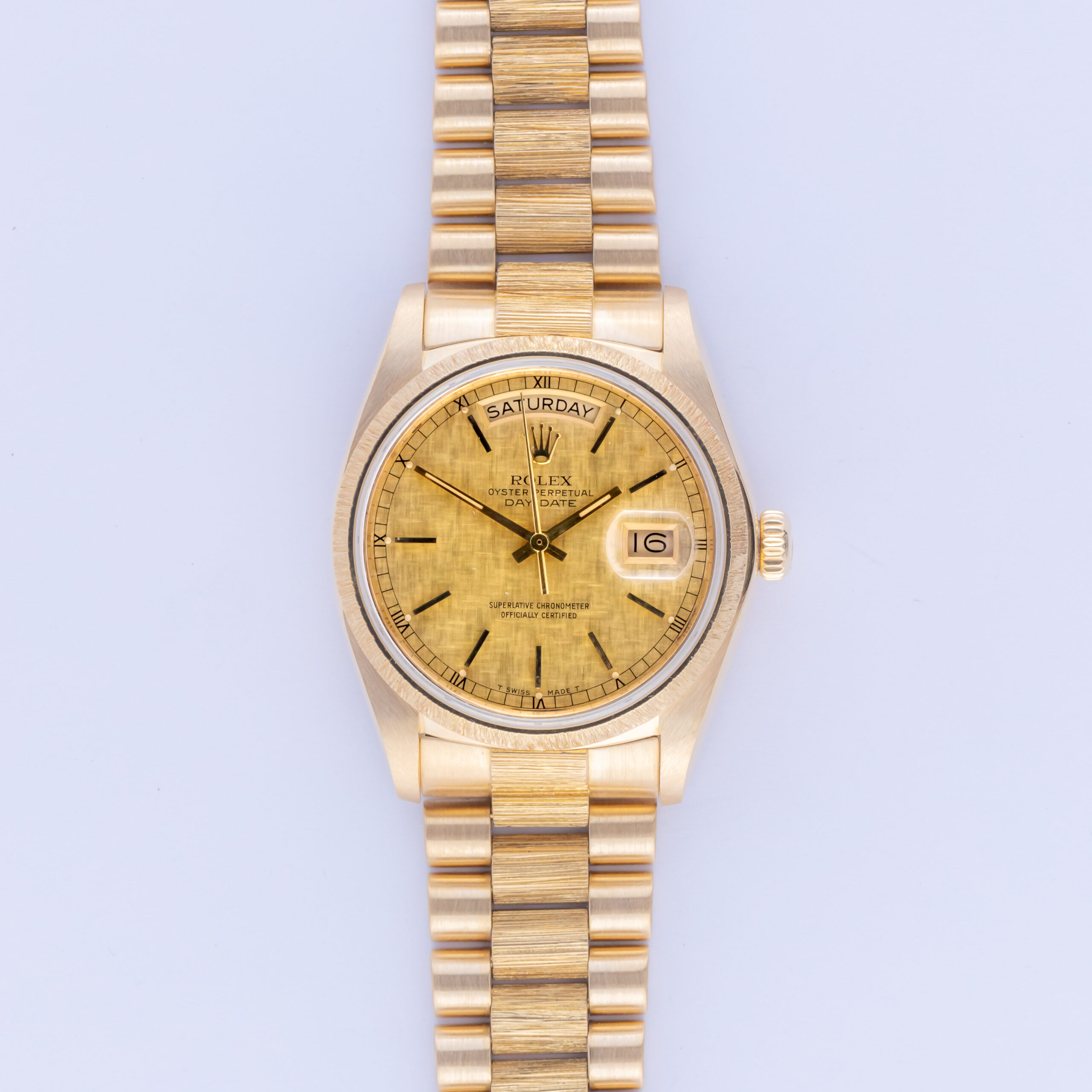 With the 18238 Rolex President’s release in the late 80s, Rolex debuted a new power to their iconic luxury watches. They improved the Day-Date’s mechanical ingenuity with the mighty Cal. 3155 Perpetual movement combined with the Double Quickset capabilities. This feature allows you to change both the date and the day without altering the time. Rotate the crown one way, change the date, rotate it the other way, and change the day. Truly as simple as they are elegant.