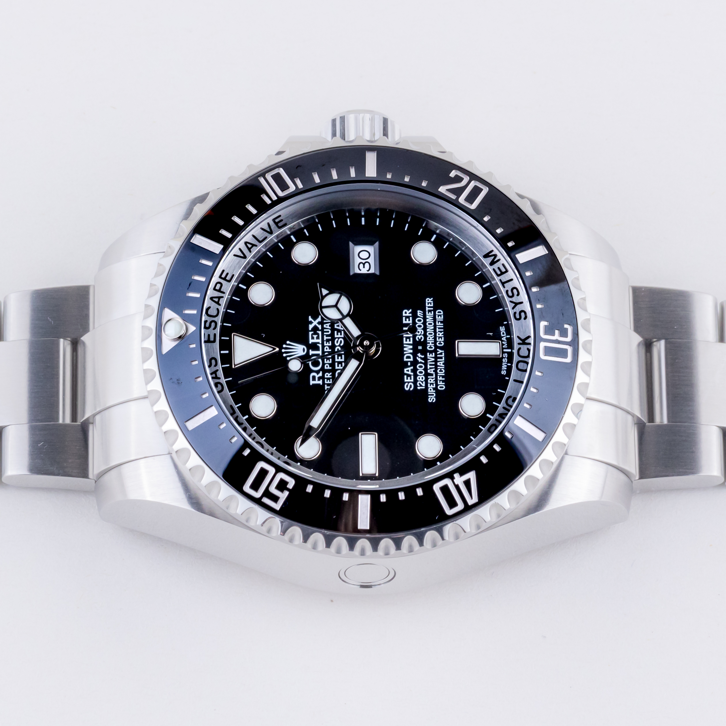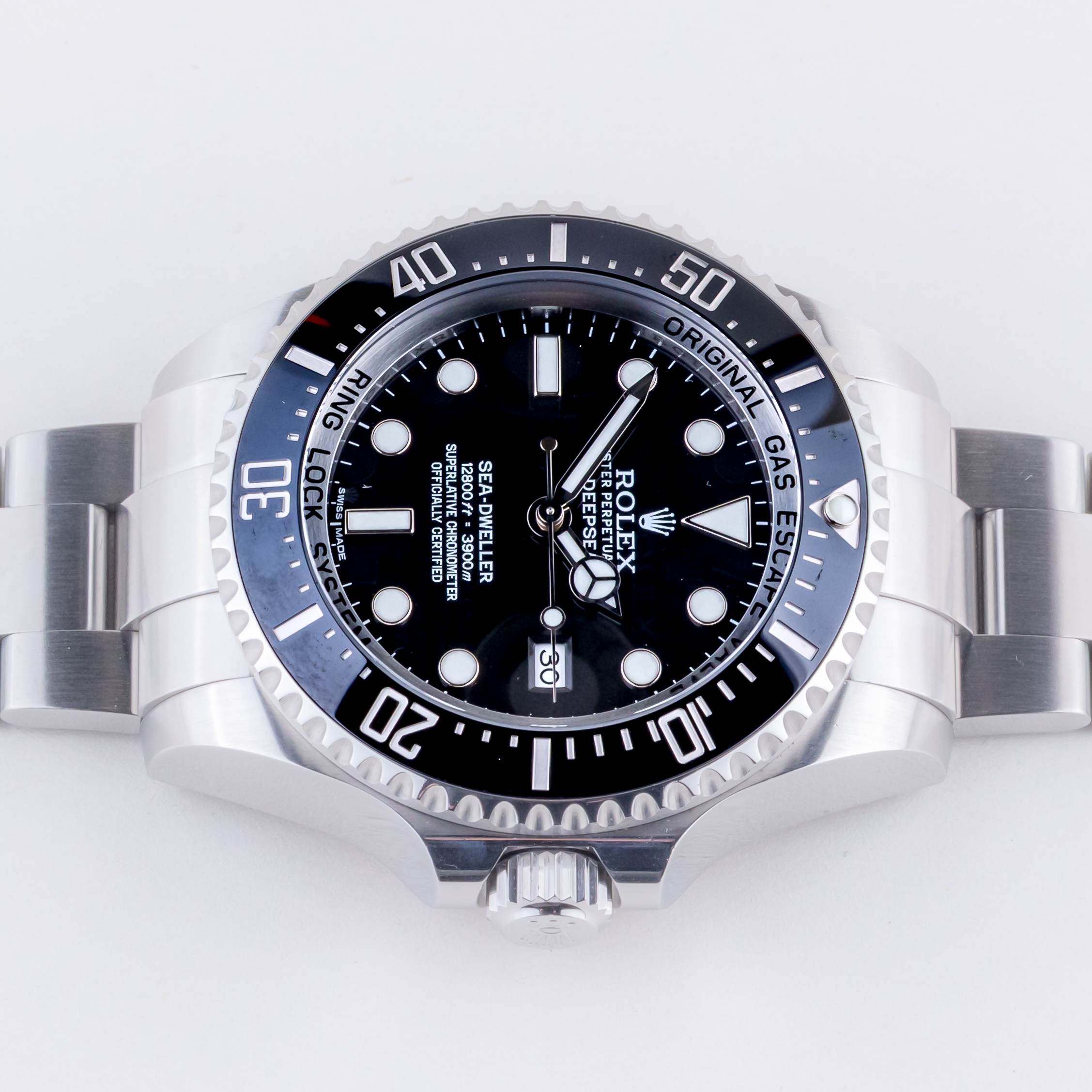 Rolex Sea-Dweller Reference 116660 from 2015 including full set. The Sea-Dweller Reference 116660 measures a 44mm stainless steel case with a helium escape valve, a stainless steel oysterbracelet with glidelock and black rotatable bezel. The Deepsea-Dweller 116660 features an automatic movement caliber 3135 with quickset date function, a scratch resistance sapphire crystal and a black dial with chromalight display.